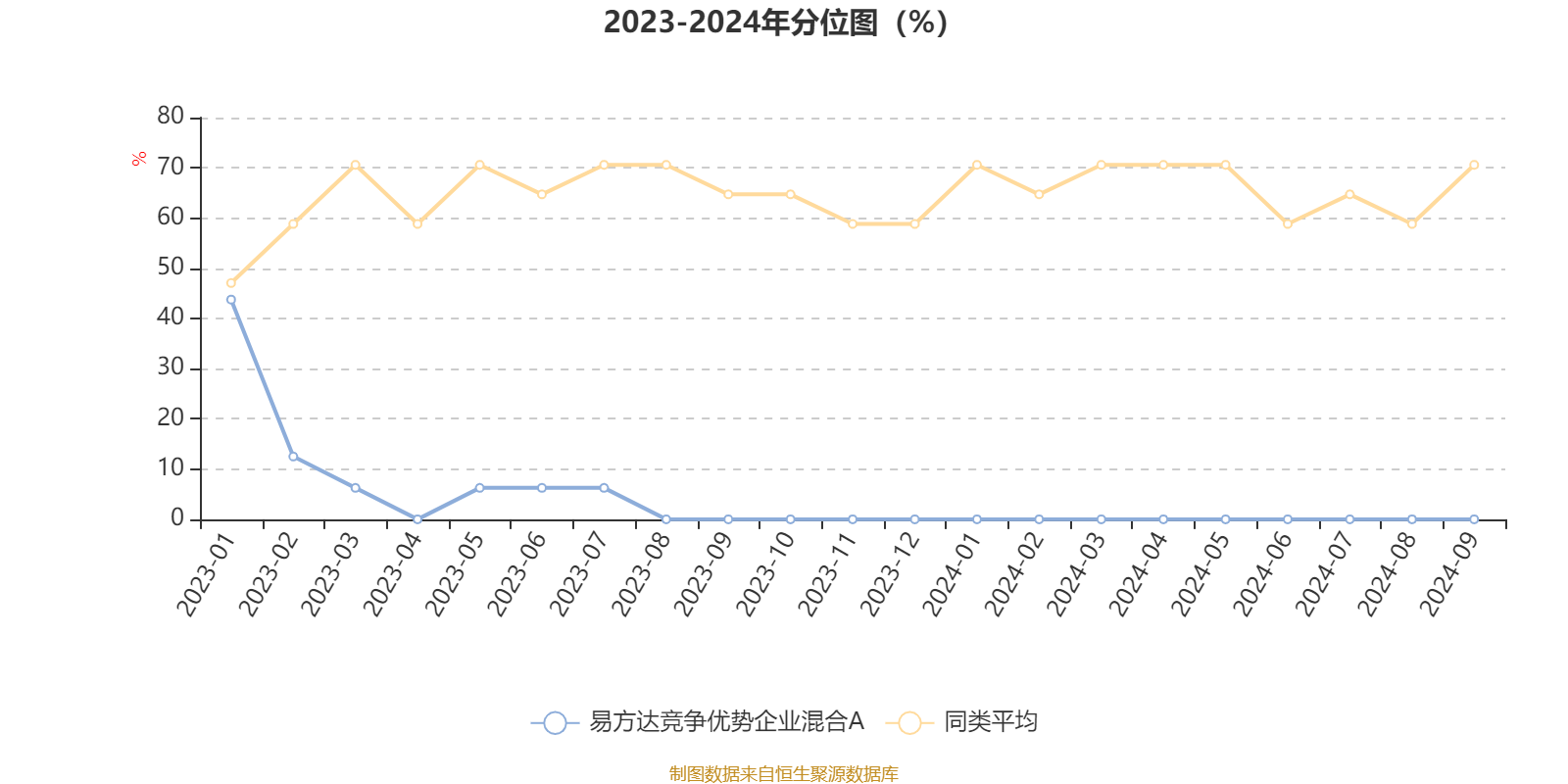 通过所选区间该基金净值增长率分位图,可以观察该基金与同类基金业绩比较情况。图为坐标原点到区间内某时点的净值增长率在同类基金中的分位数。
