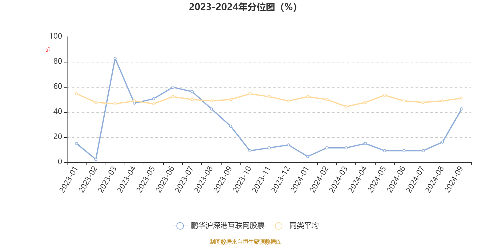 通过所选区间该基金净值增长率分位图,可以观察该基金与同类基金业绩比较情况。图为坐标原点到区间内某时点的净值增长率在同类基金中的分位数。