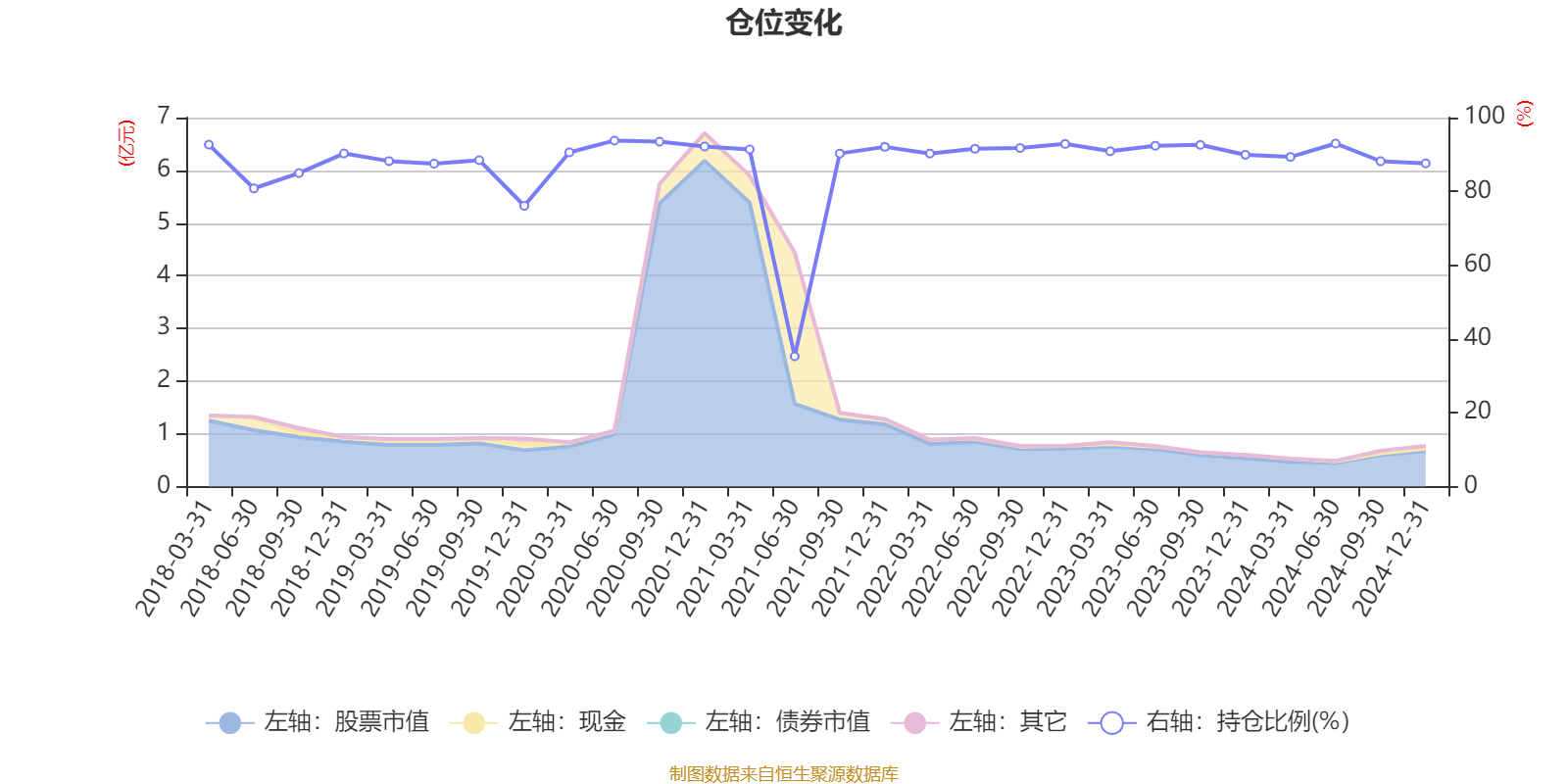 据定期报告数据统计,近三年平均股票仓位为90.86%,同类平均为88.08%。2020年上半年末基金达到93.78%的最高仓位,2021年上半年末最低,为35.31%。