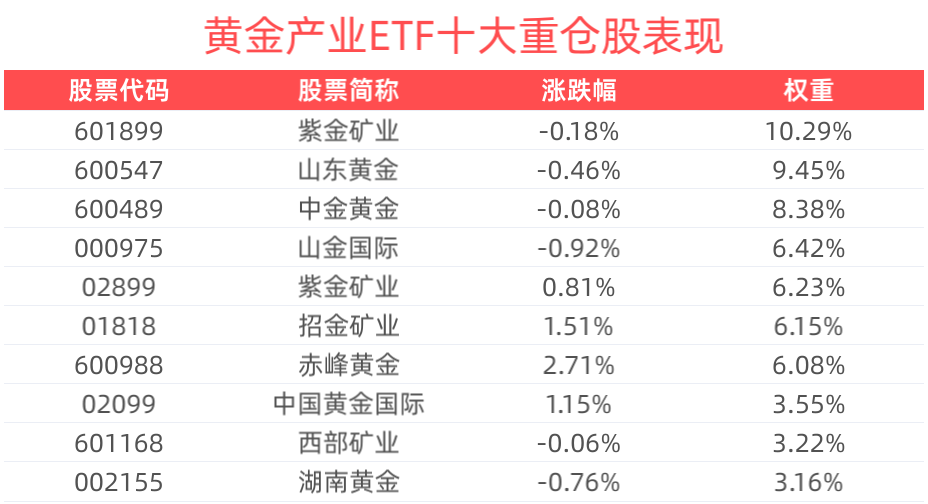 费率方面,黄金产业ETF管理费率为0.50%,托管费率为0.10%。