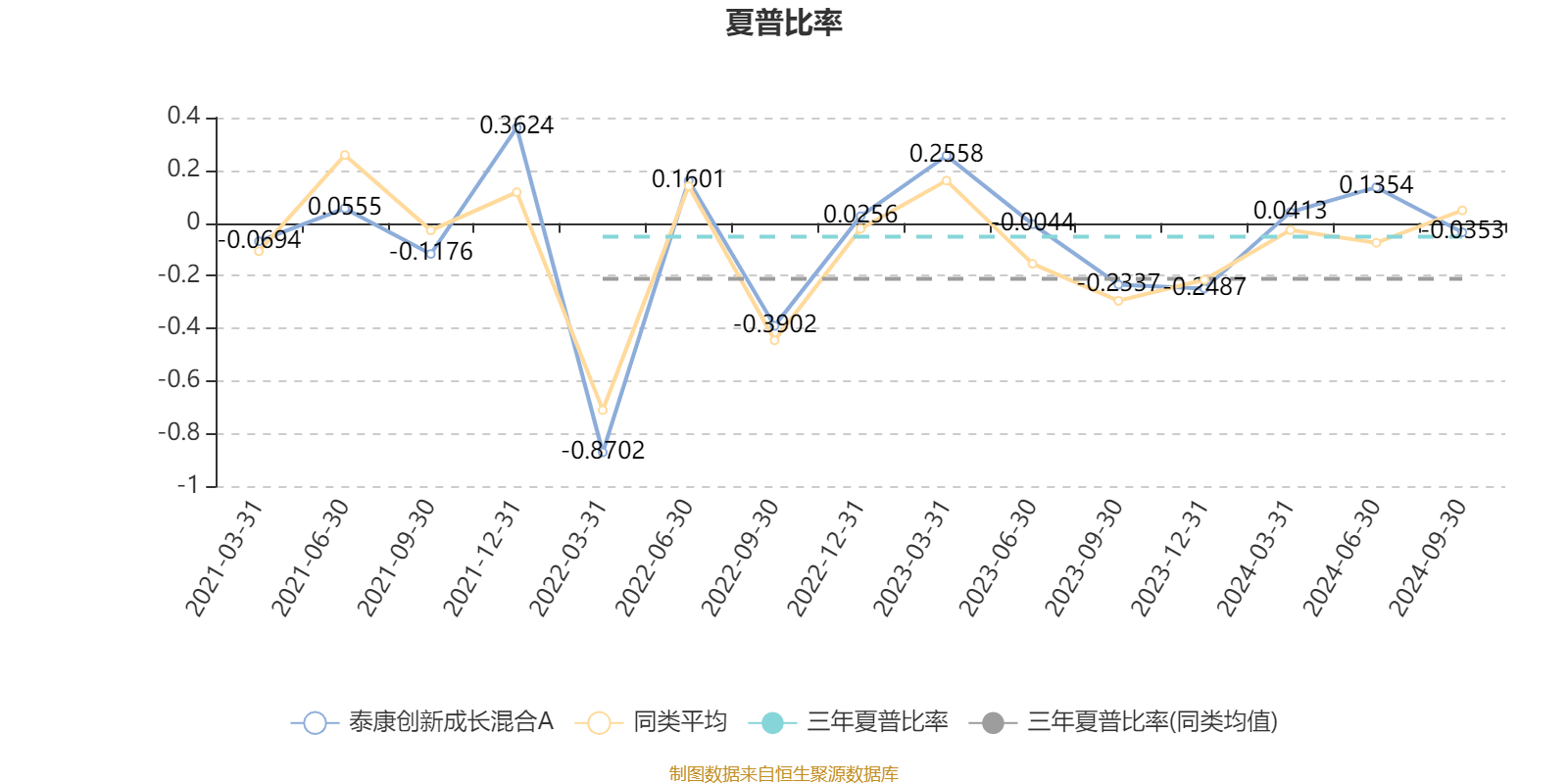 截至9月30日,基金近三年夏普比率为-0.0522,位于同类可比基金58/220。