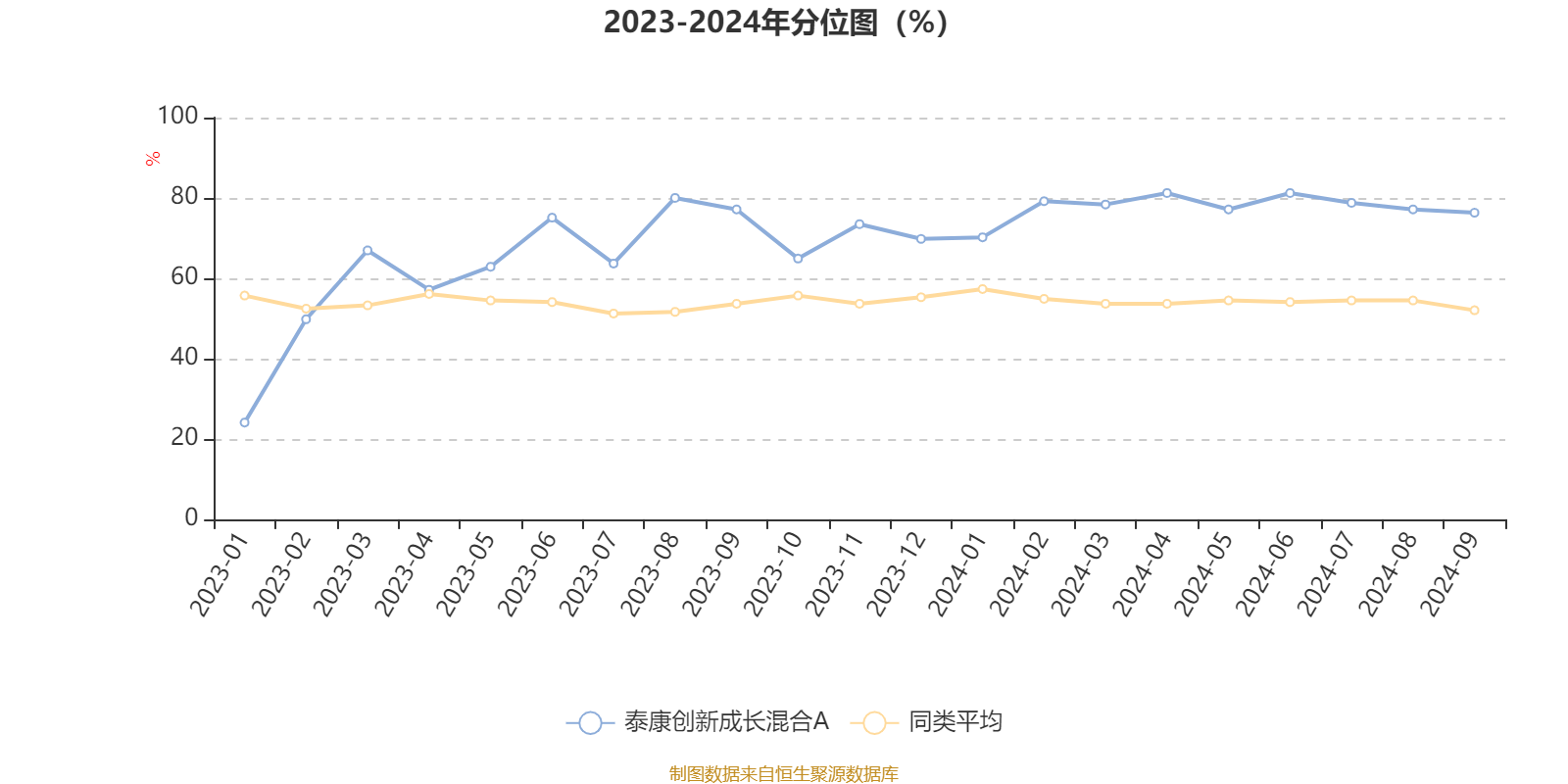 通过所选区间该基金净值增长率分位图,可以观察该基金与同类基金业绩比较情况。图为坐标原点到区间内某时点的净值增长率在同类基金中的分位数。