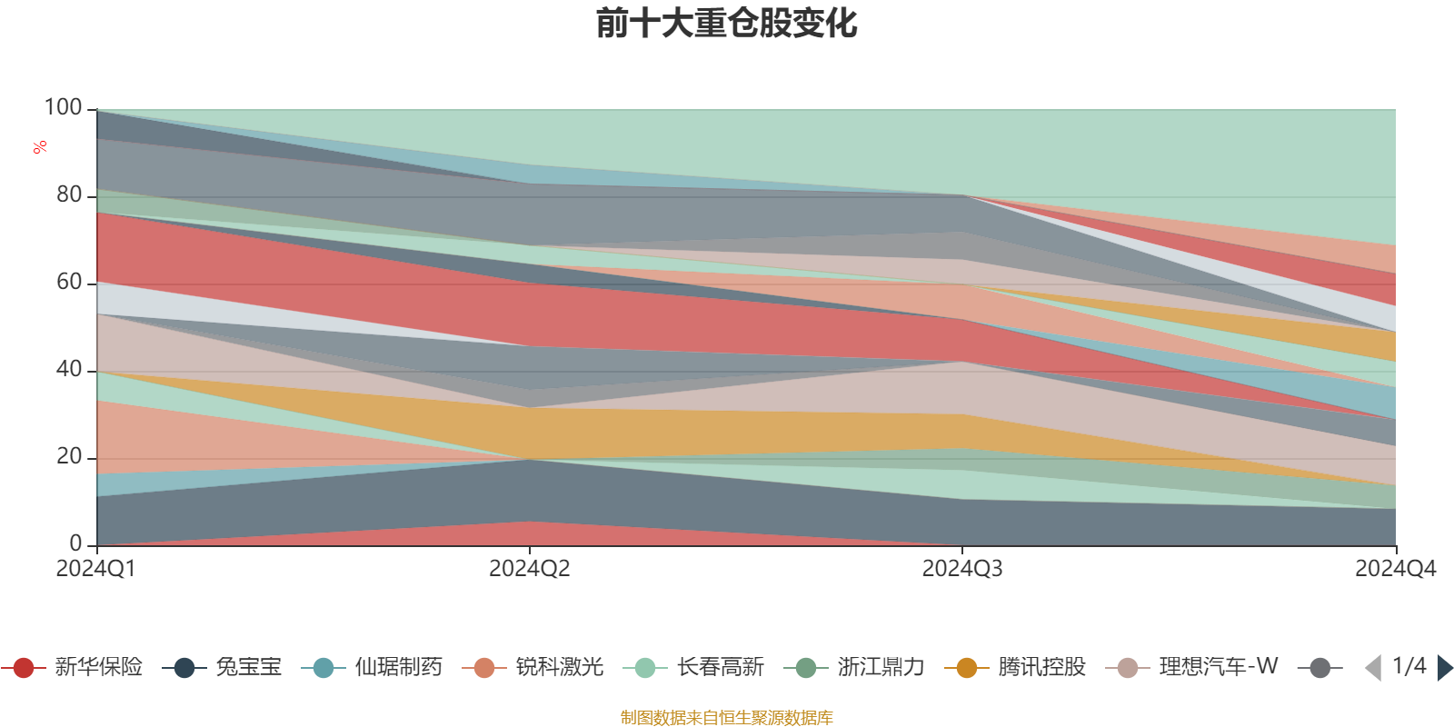 该基金持股集中度较高。截至2024年四季度末,基金十大重仓股分别是理想汽车-W、兔宝宝、华通线缆、华菱钢铁、江山股份、龙源电力、京东方A、德昌股份、顺丰控股、浙江鼎力。