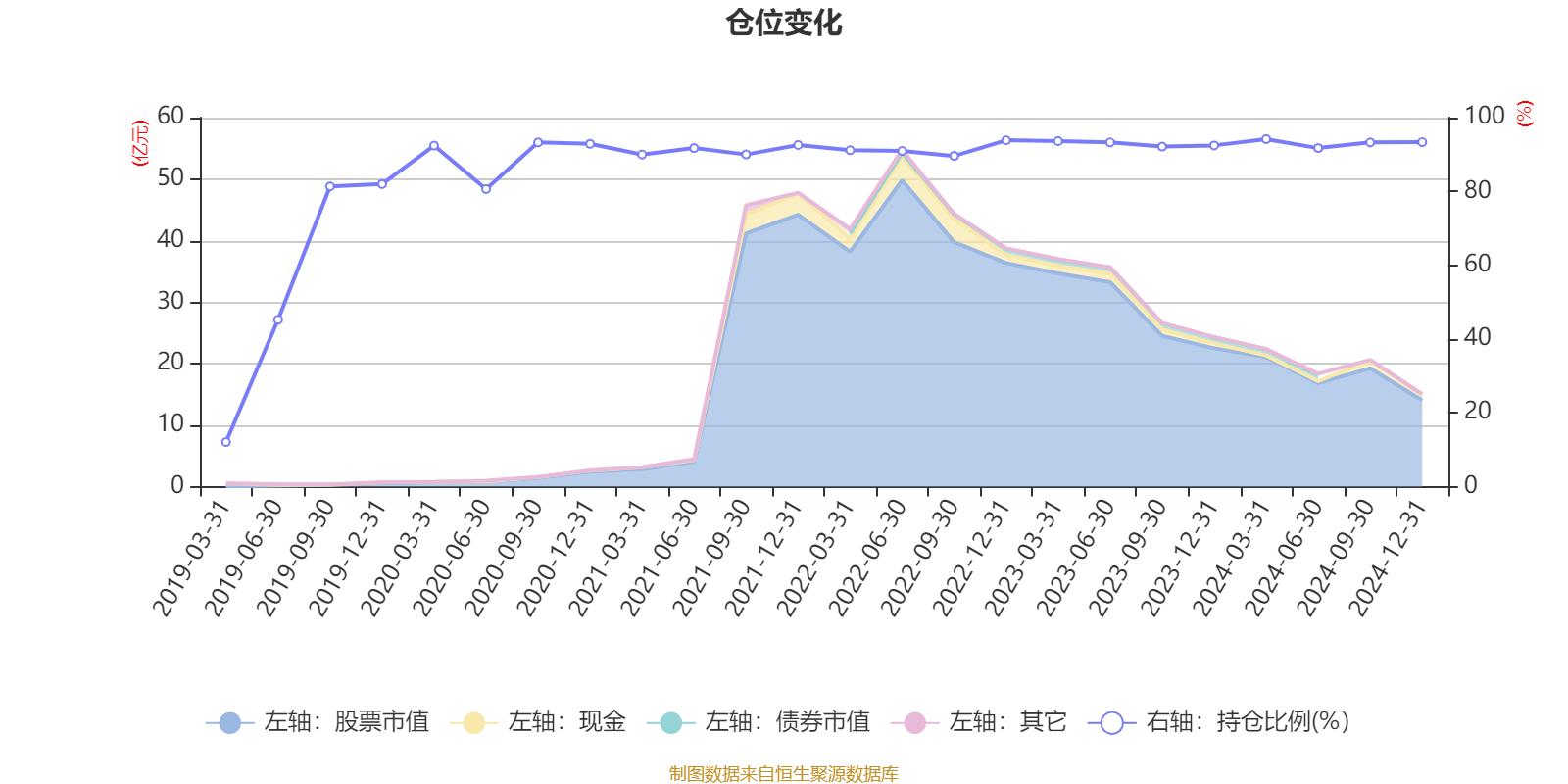 据定期报告数据统计,近三年平均股票仓位为92.47%,同类平均为87.17%。2024年一季度末基金达到94.17%的最高仓位,2019年一季度末最低,为12.07%。