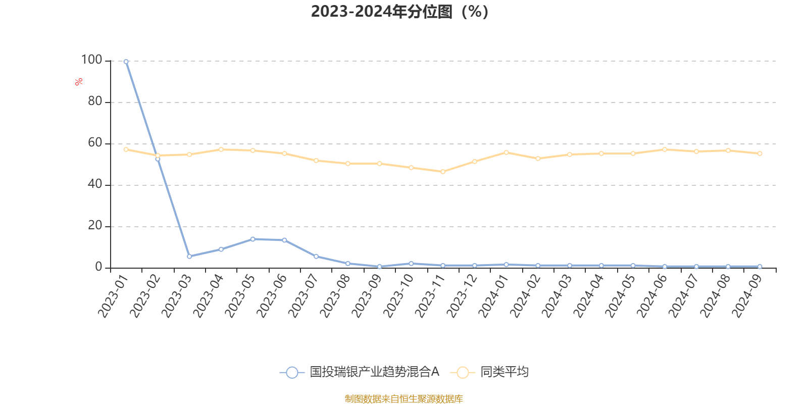 通过所选区间该基金净值增长率分位图,可以观察该基金与同类基金业绩比较情况。图为坐标原点到区间内某时点的净值增长率在同类基金中的分位数。