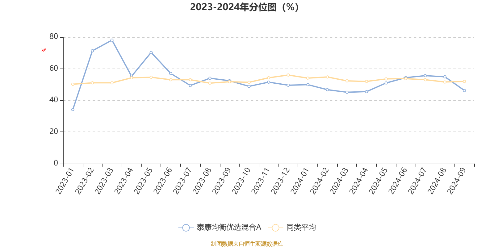 通过所选区间该基金净值增长率分位图,可以观察该基金与同类基金业绩比较情况。图为坐标原点到区间内某时点的净值增长率在同类基金中的分位数。