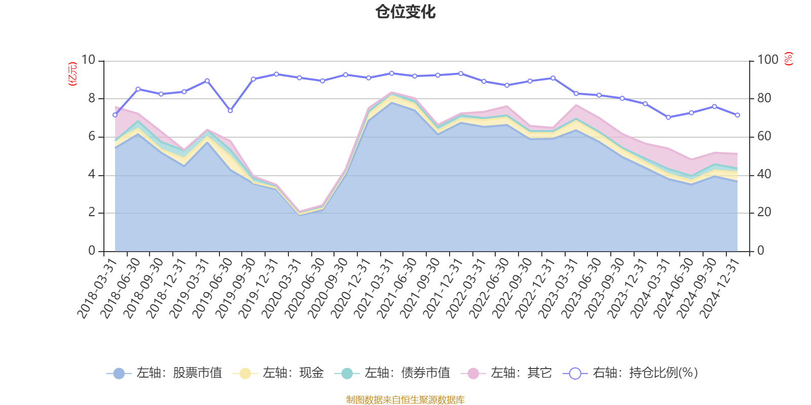 据定期报告数据统计,近三年平均股票仓位为80.8%,同类平均为84.92%。2021年一季度末基金达到93.41%的最高仓位,2024年一季度末最低,为70.33%。