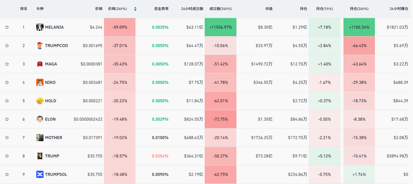 特朗普币持续震荡!24小时内下跌18.57%,爆仓金额超5000万美元