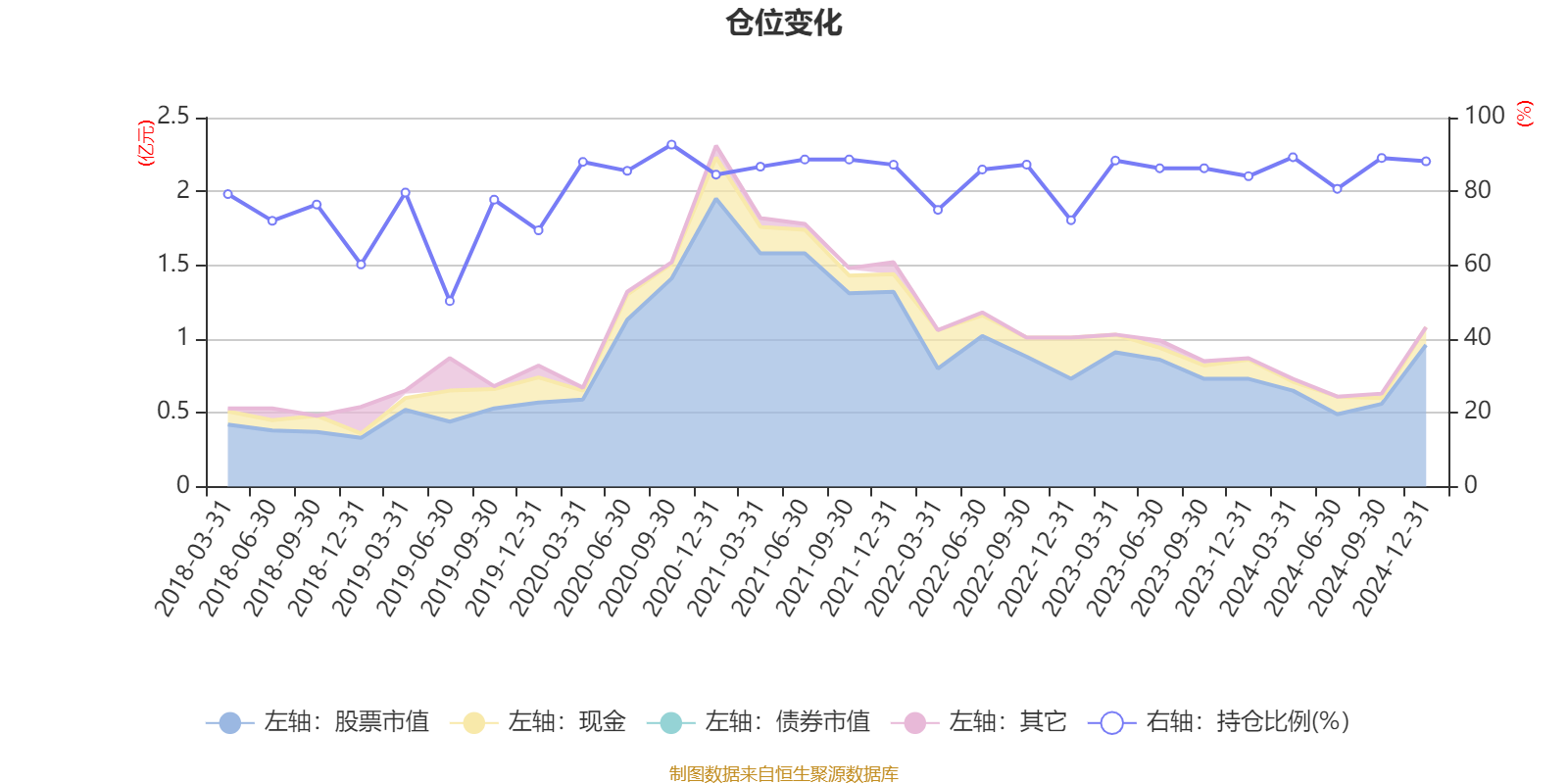 据定期报告数据统计,近三年平均股票仓位为84.38%,同类平均为85.62%。2020年三季度末基金达到92.69%的最高仓位,2019年上半年末最低,为50.27%。
