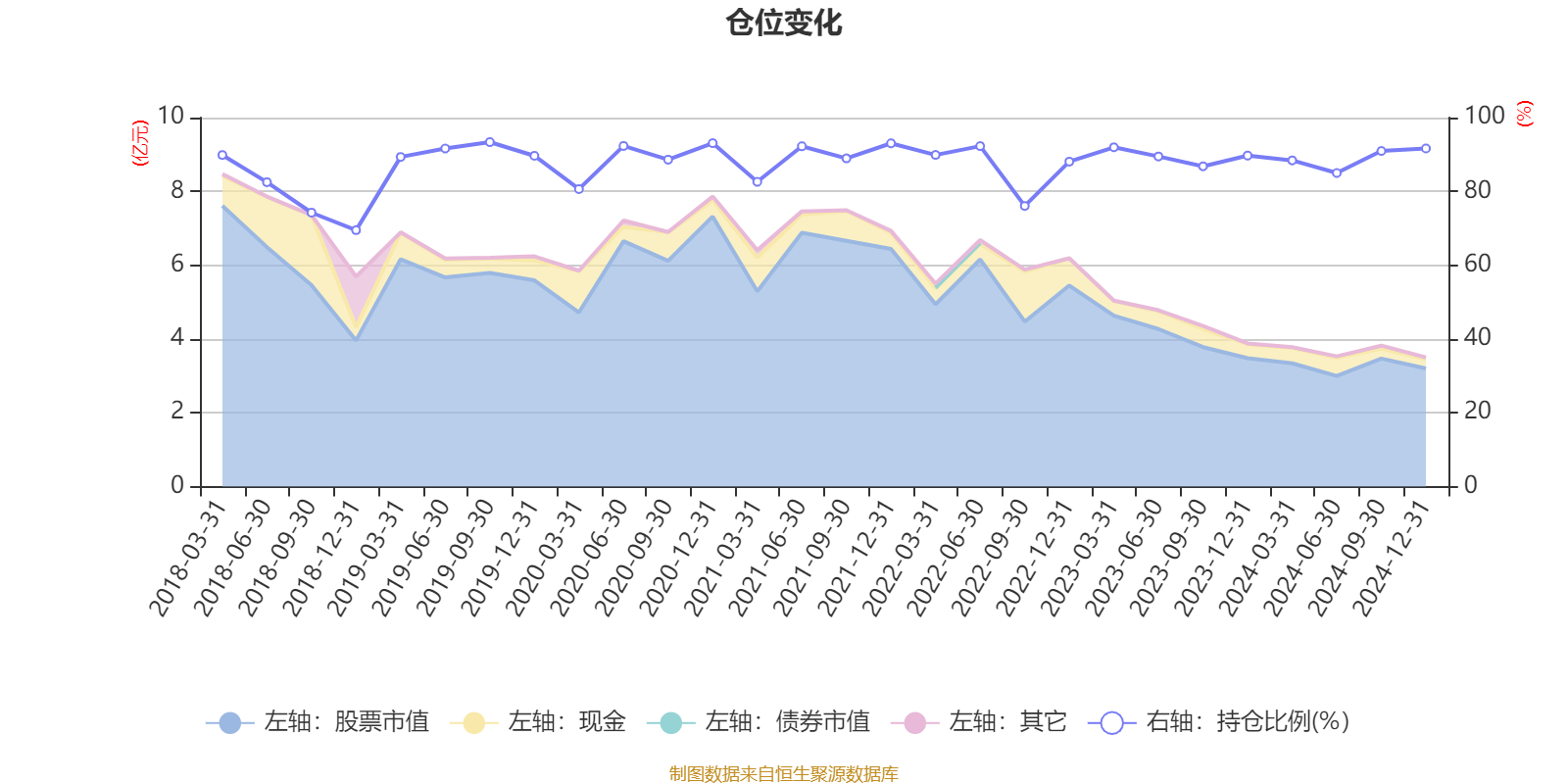 据定期报告数据统计,近三年平均股票仓位为88.35%,同类平均为84.96%。2019年三季度末基金达到93.36%的最高仓位,2018年末最低,为69.49%。