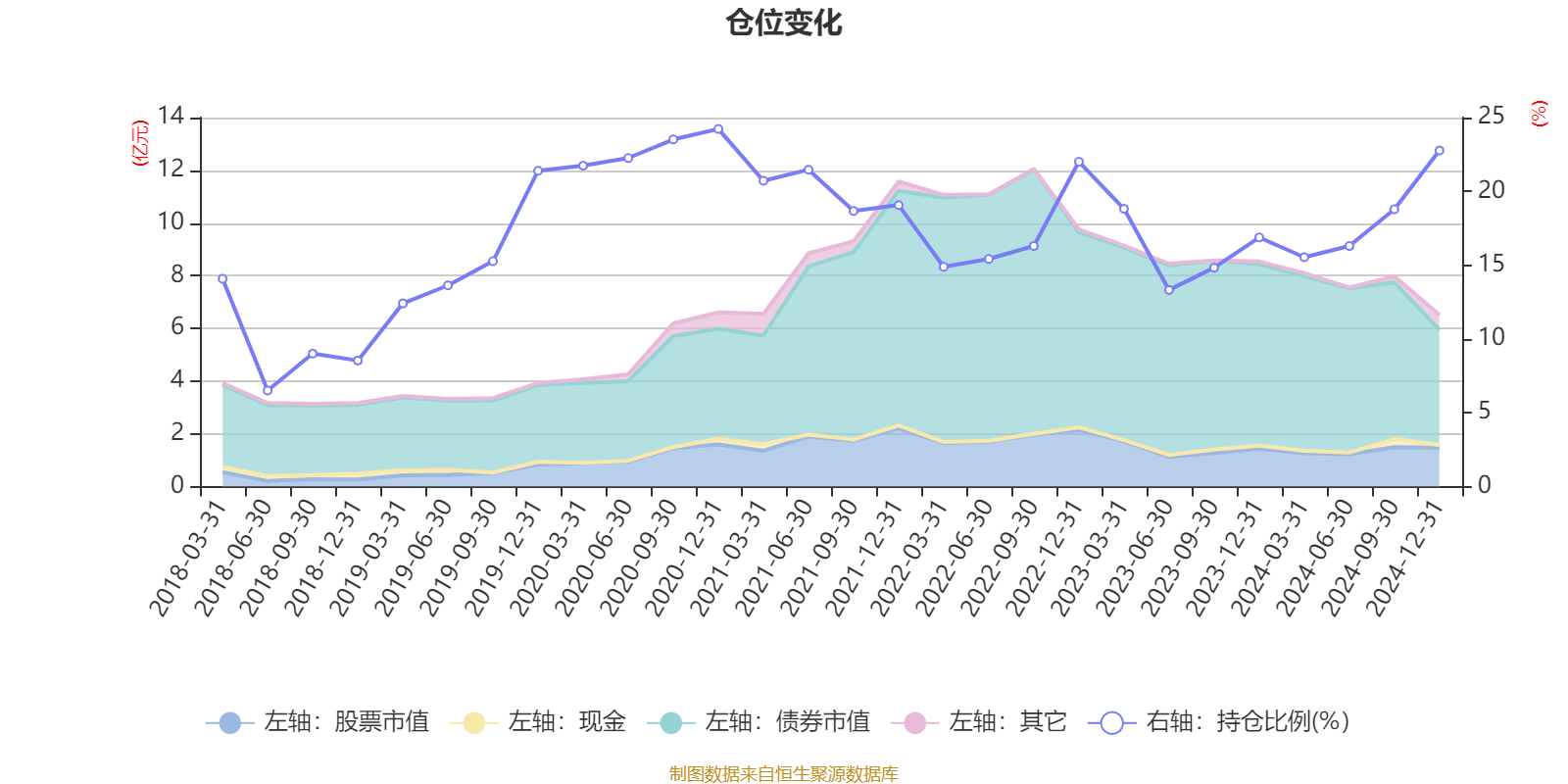 据定期报告数据统计,近三年平均股票仓位为17.16%,同类平均为18.69%。2020年末基金达到24.23%的最高仓位,2018年上半年末最低,为6.51%。