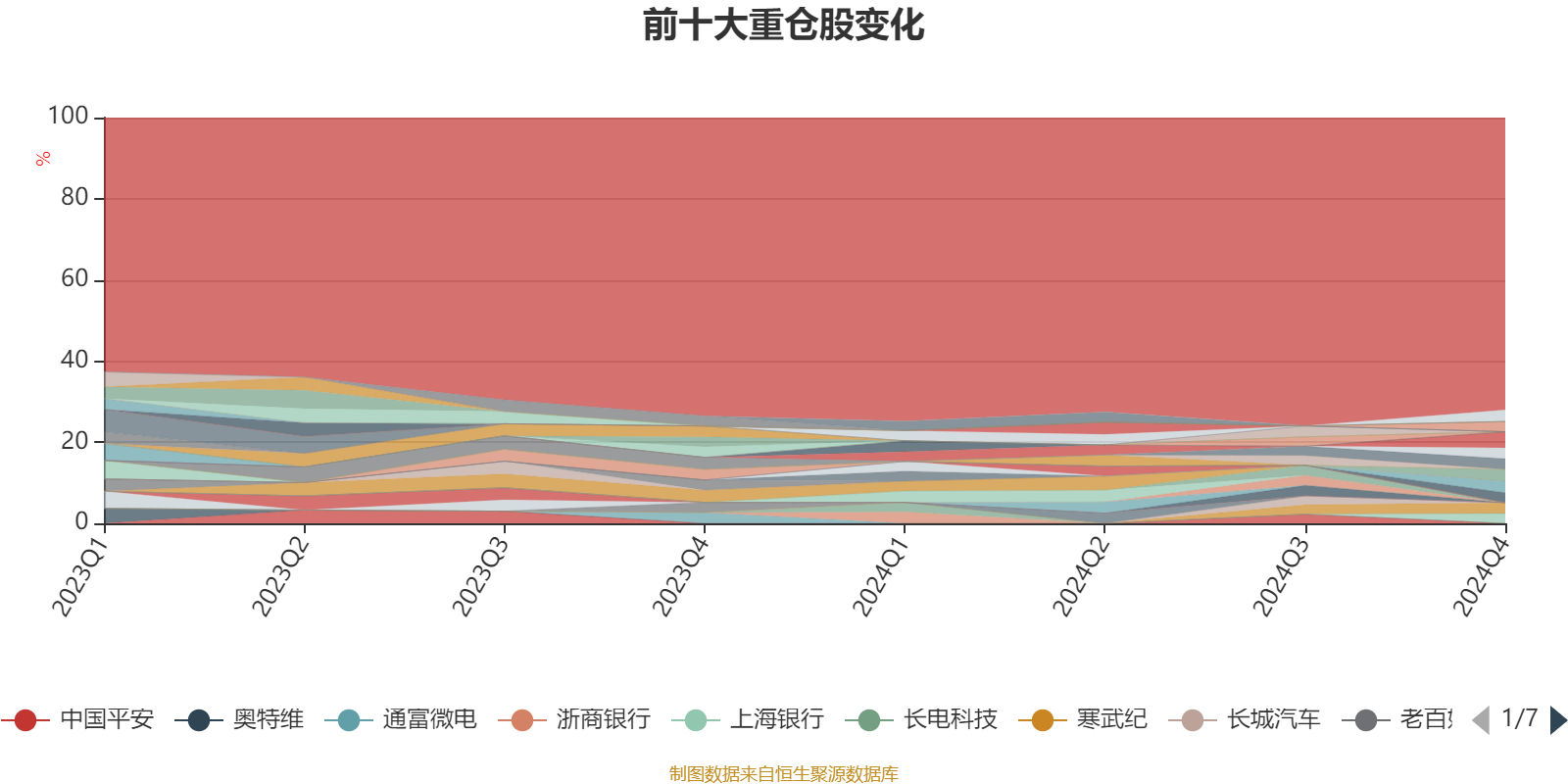 截至2024年四季度末,基金十大重仓股分别是中国移动、金山办公、沪农商行、中国联通、宇通客车、寒武纪、歌尔股份、海澜之家、上海银行、格力电器。