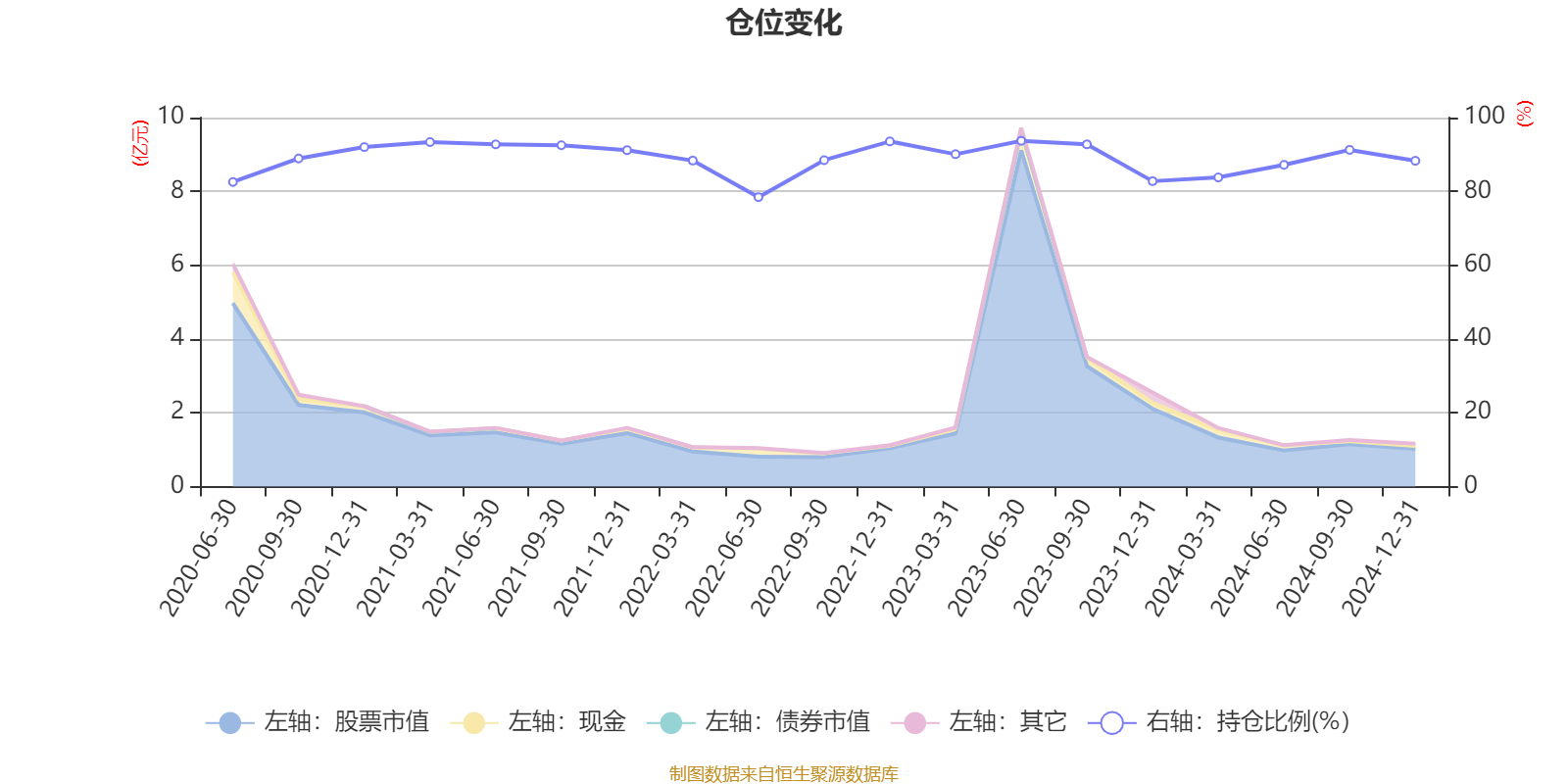 截至2024年四季度末,基金十大重仓股分别是中远海控、中国银行、格力电器、中国平安、江苏银行、农业银行、浦发银行、北京银行、工商银行、中国石化。