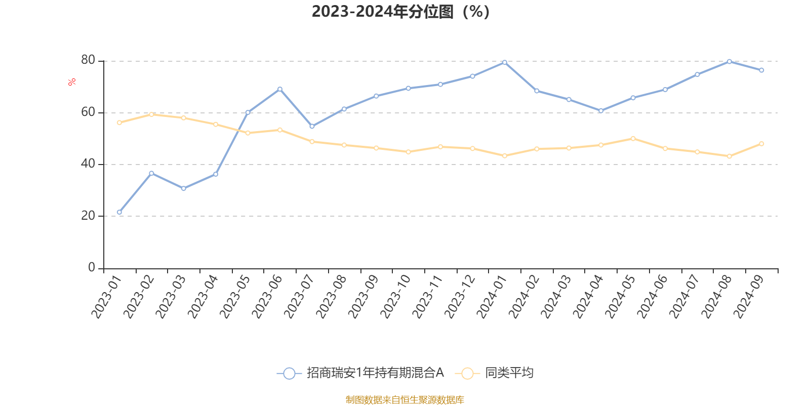 通过所选区间该基金净值增长率分位图,可以观察该基金与同类基金业绩比较情况。图为坐标原点到区间内某时点的净值增长率在同类基金中的分位数。