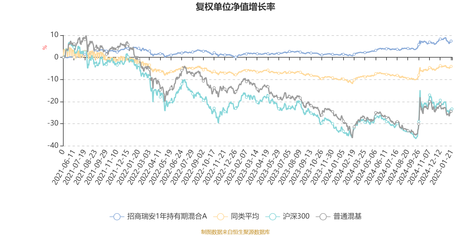 截至1月20日,招商瑞安1年持有期混合A近三个月复权单位净值增长率为0.43%,位于同类可比基金517/670;近半年复权单位净值增长率为4.05%,位于同类可比基金258/670;近一年复权单位净值增长率为6.57%,位于同类可比基金323/664;近三年复权单位净值增长率为3.39%,位于同类可比基金217/523。