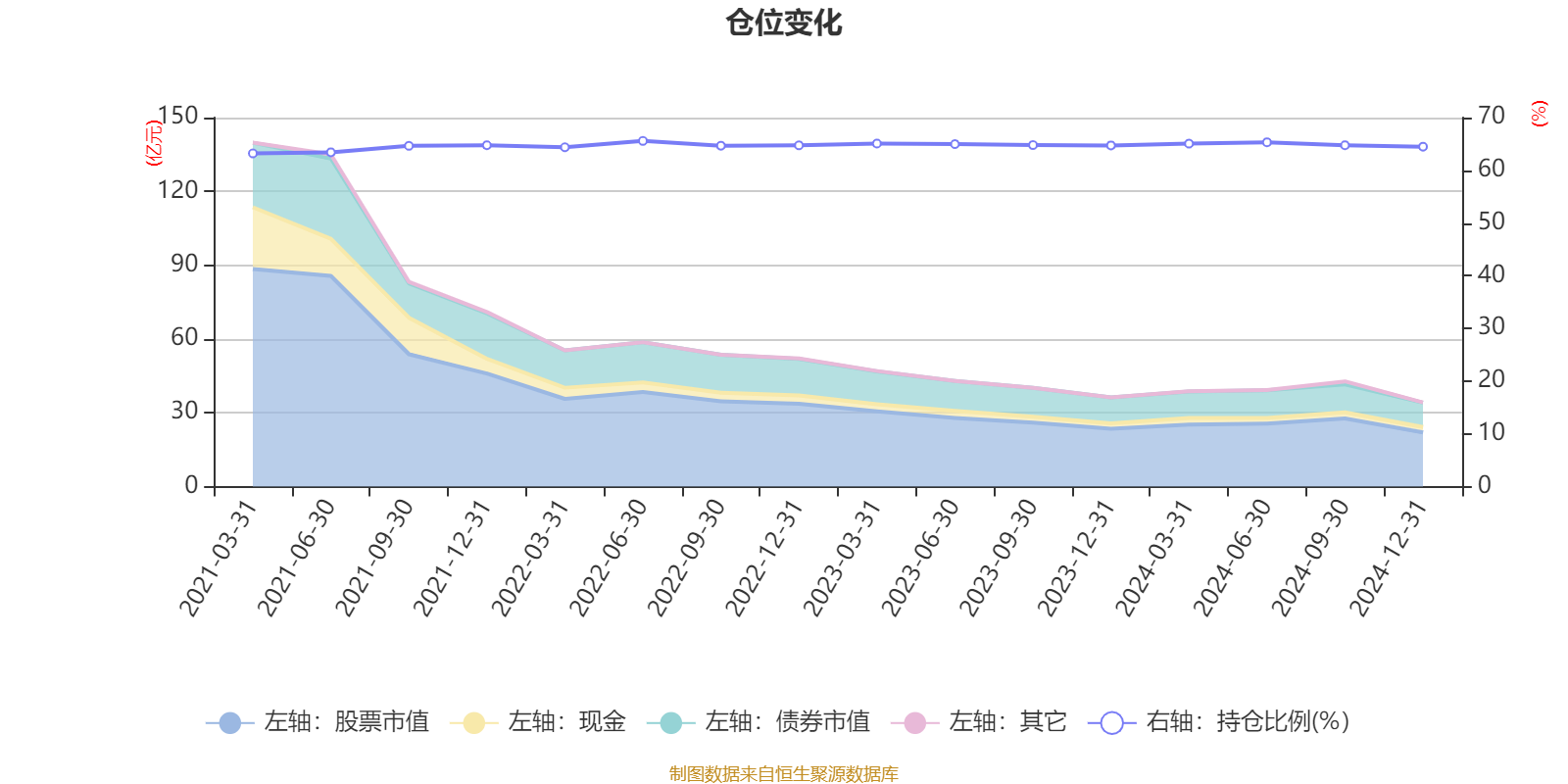 据定期报告数据统计,近三年平均股票仓位为64.88%,同类平均为83.7%。2022年上半年末基金达到65.58%的最高仓位,2021年一季度末最低,为63.21%。