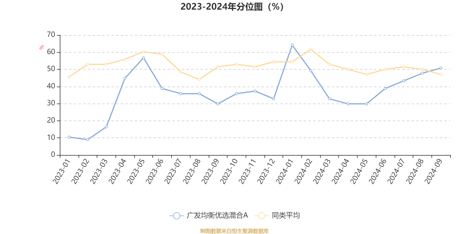 通过所选区间该基金净值增长率分位图,可以观察该基金与同类基金业绩比较情况。图为坐标原点到区间内某时点的净值增长率在同类基金中的分位数。