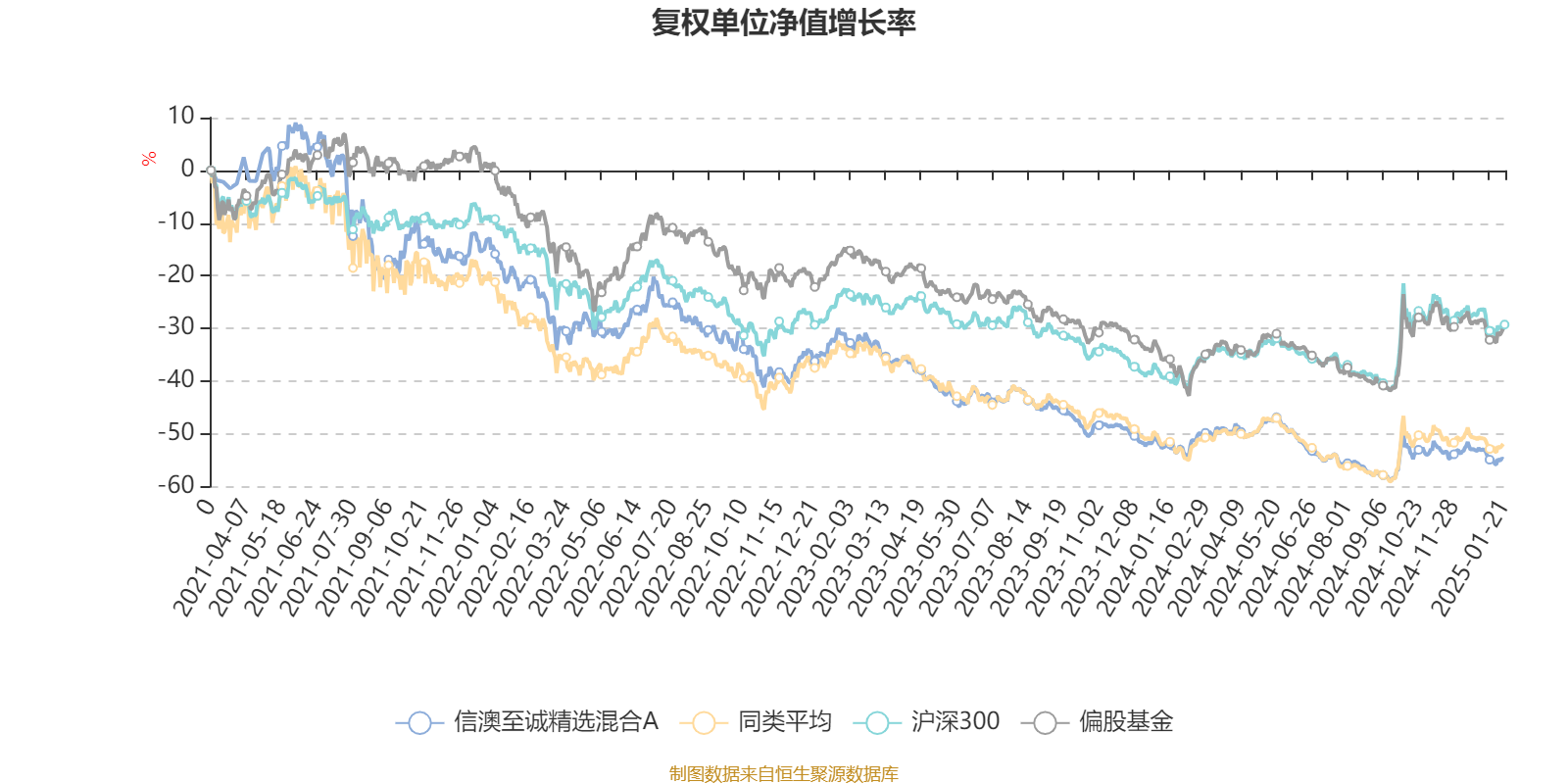 截至1月20日,信澳至诚精选混合A近三个月复权单位净值增长率为-2.27%,位于同类可比基金81/139;近半年复权单位净值增长率为-2.10%,位于同类可比基金120/139;近一年复权单位净值增长率为-4.86%,位于同类可比基金106/137;近三年复权单位净值增长率为-44.73%,位于同类可比基金115/117。