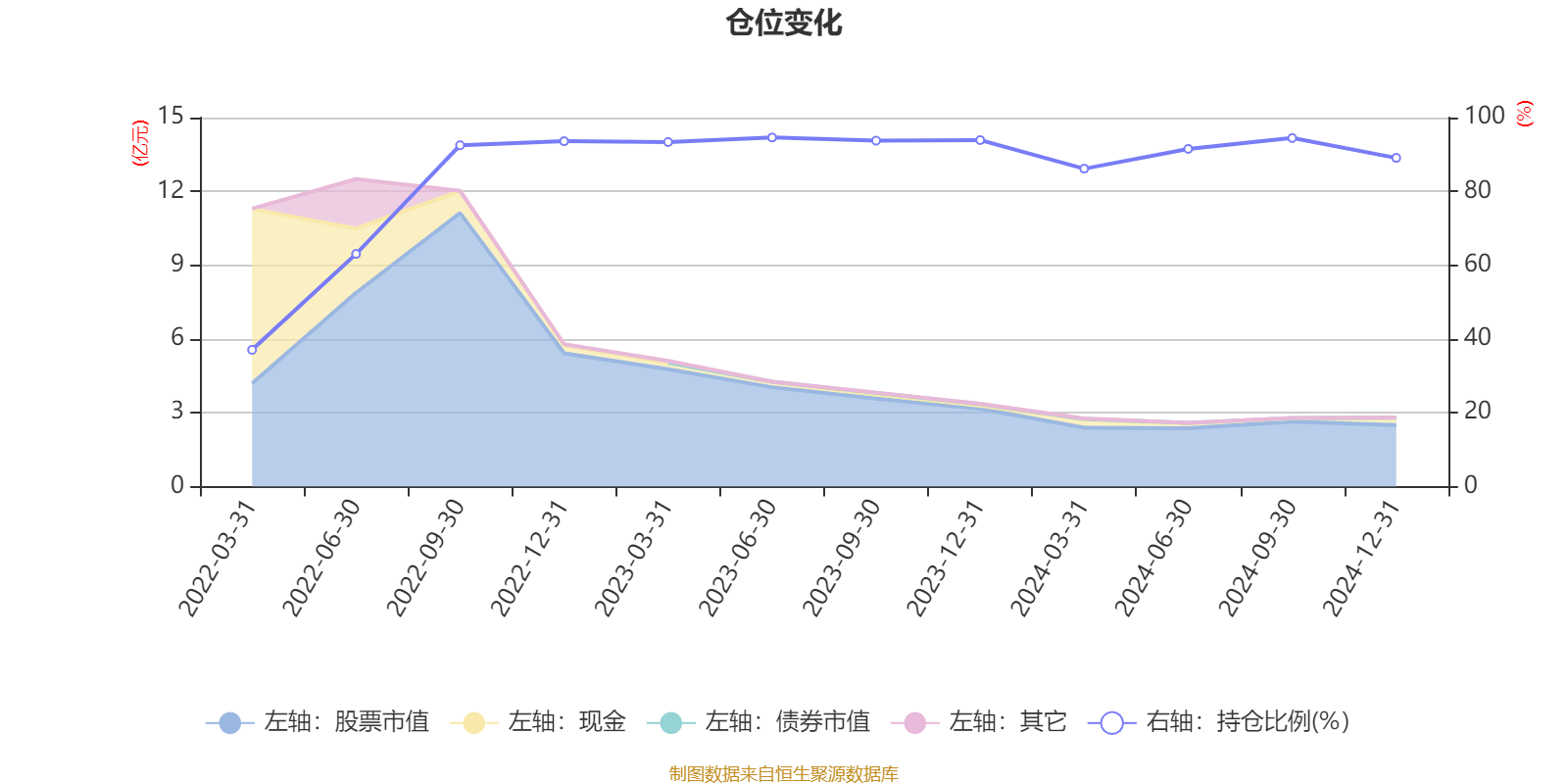据定期报告数据统计,近三年平均股票仓位为85.26%,同类平均为83.7%。2023年上半年末基金达到94.59%的最高仓位,2022年一季度末最低,为37.06%。