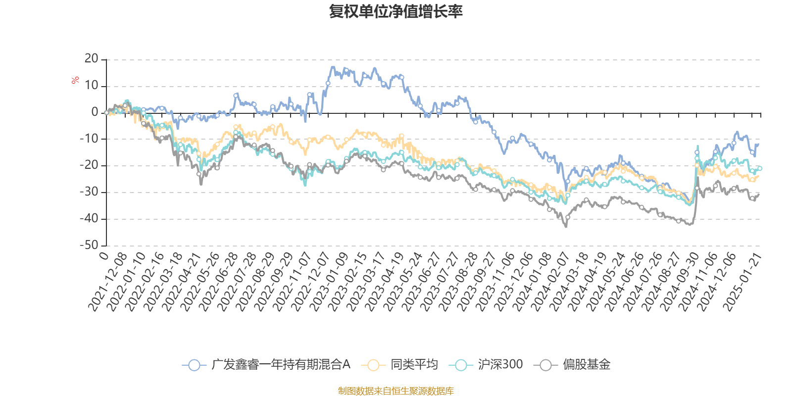 截至1月20日,广发鑫睿一年持有期混合A近三个月复权单位净值增长率为10.59%,位于同类可比基金1/91;近半年复权单位净值增长率为19.47%,位于同类可比基金4/91;近一年复权单位净值增长率为8.69%,位于同类可比基金61/88;近三年复权单位净值增长率为-13.36%,位于同类可比基金36/66。