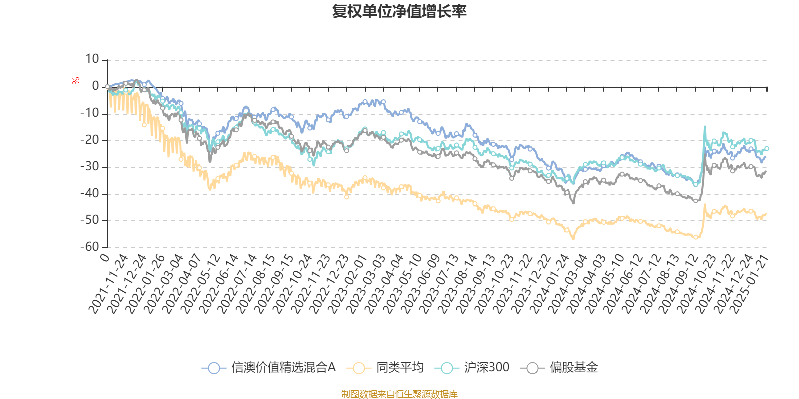 截至1月20日,信澳价值精选混合A近三个月复权单位净值增长率为-1.40%,位于同类可比基金376/646;近半年复权单位净值增长率为7.39%,位于同类可比基金374/645;近一年复权单位净值增长率为10.55%,位于同类可比基金369/633;近三年复权单位净值增长率为-25.39%,位于同类可比基金207/444。