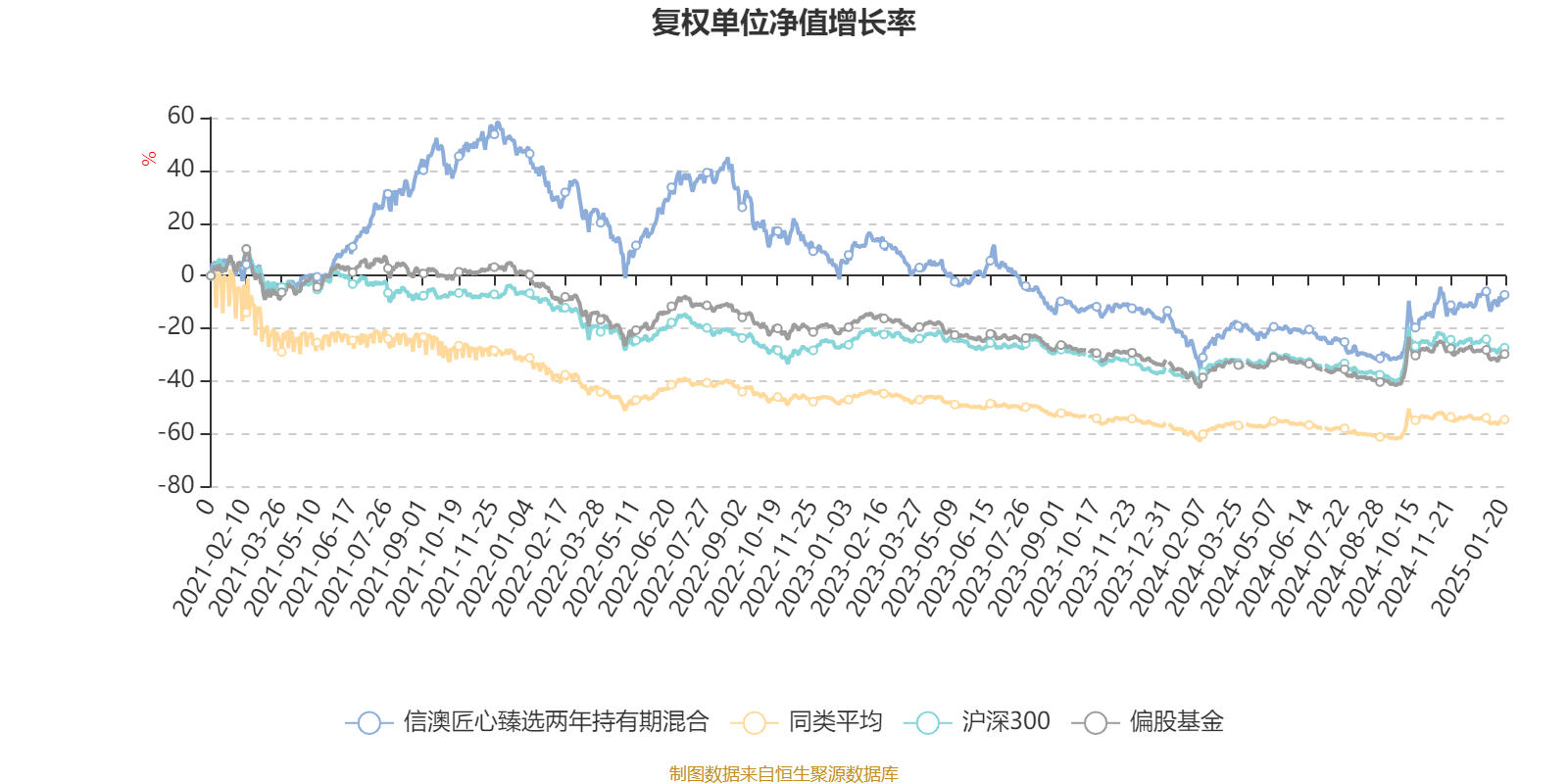 截至1月20日,信澳匠心臻选两年持有期混合近三个月复权单位净值增长率为10.98%,位于同类可比基金1/210;近半年复权单位净值增长率为23.25%,位于同类可比基金12/210;近一年复权单位净值增长率为21.67%,位于同类可比基金40/210;近三年复权单位净值增长率为-31.33%,位于同类可比基金126/193。