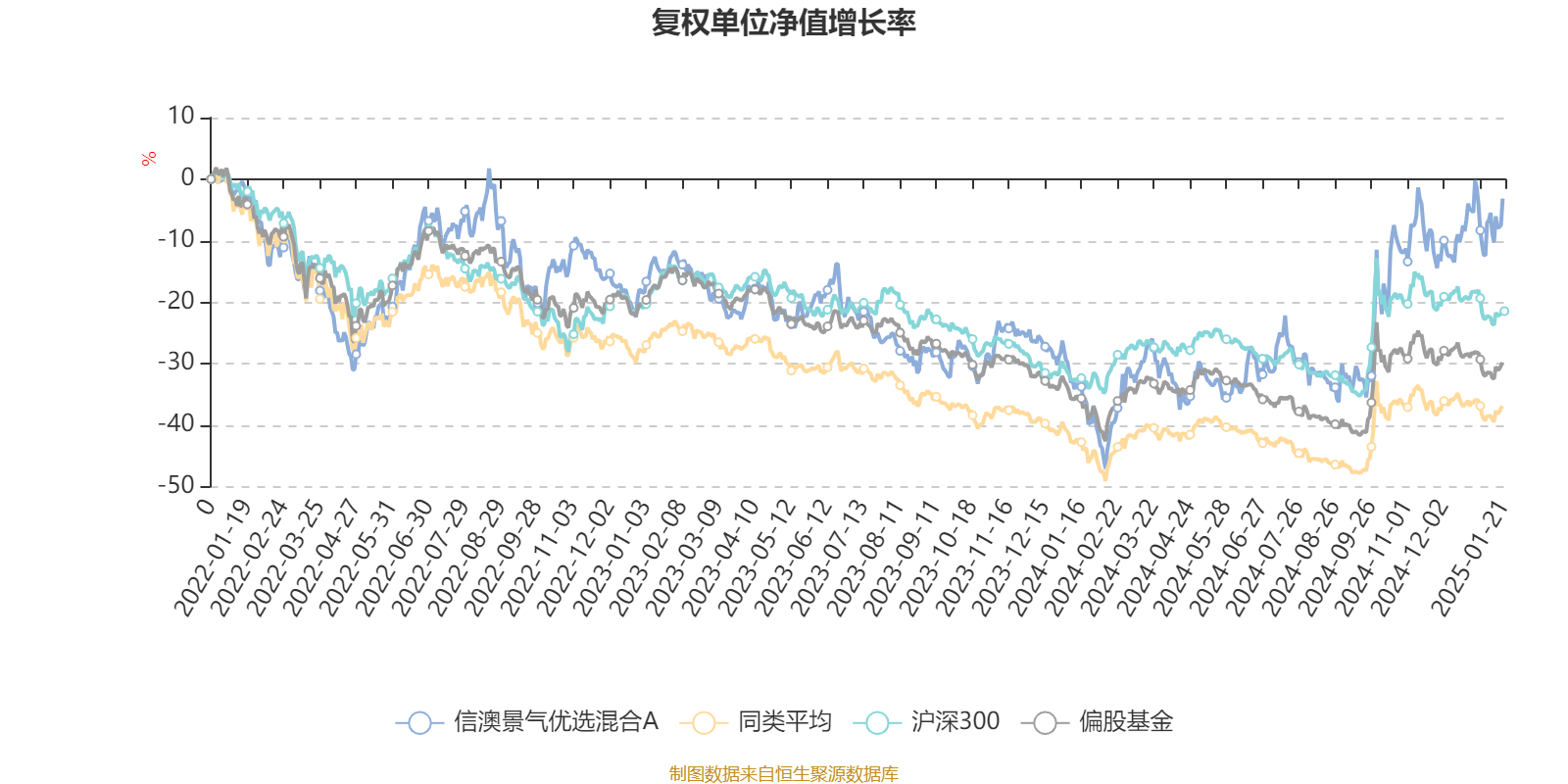 截至1月20日,信澳景气优选混合A近三个月复权单位净值增长率为9.62%,位于同类可比基金23/536;近半年复权单位净值增长率为33.10%,位于同类可比基金18/536;近一年复权单位净值增长率为52.38%,位于同类可比基金5/500;近三年复权单位净值增长率为-2.79%,位于同类可比基金11/265。