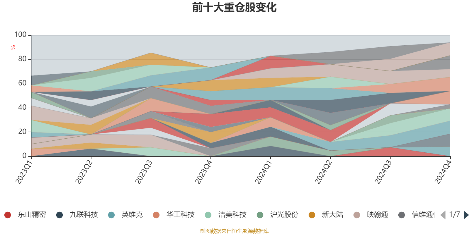 该基金持股集中度较高,近2年前十大重仓股集中度长期超过60%。截至2024年四季度末,基金十大重仓股分别是豪鹏科技、麦格米特、胜宏科技、领益智造、生益电子、新易盛、沃尔核材、英维克、协创数据、天孚通信。