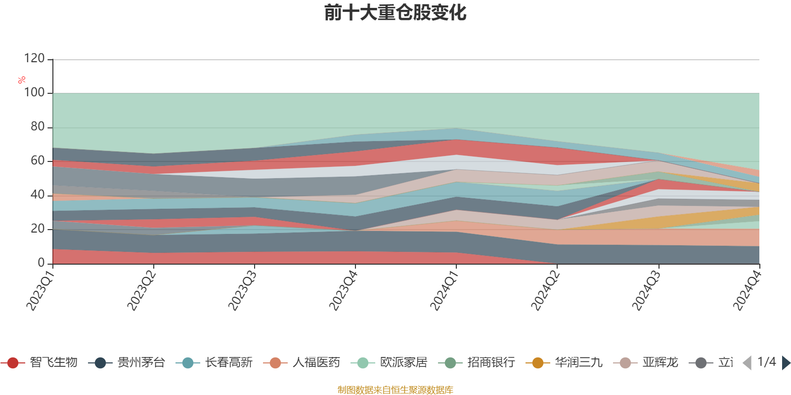 该基金持股集中度较高。截至2024年四季度末,基金十大重仓股分别是贵州茅台、人福医药、海尔智家、派林生物、华润三九、欧派家居、立讯精密、徐工机械、招商银行、恩华药业。