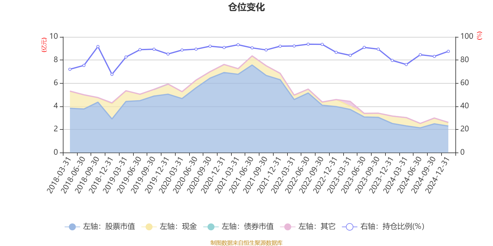 据定期报告数据统计,近三年平均股票仓位为86.81%,同类平均为84.96%。2022年上半年末基金达到93.71%的最高仓位,2018年末最低,为67.64%。