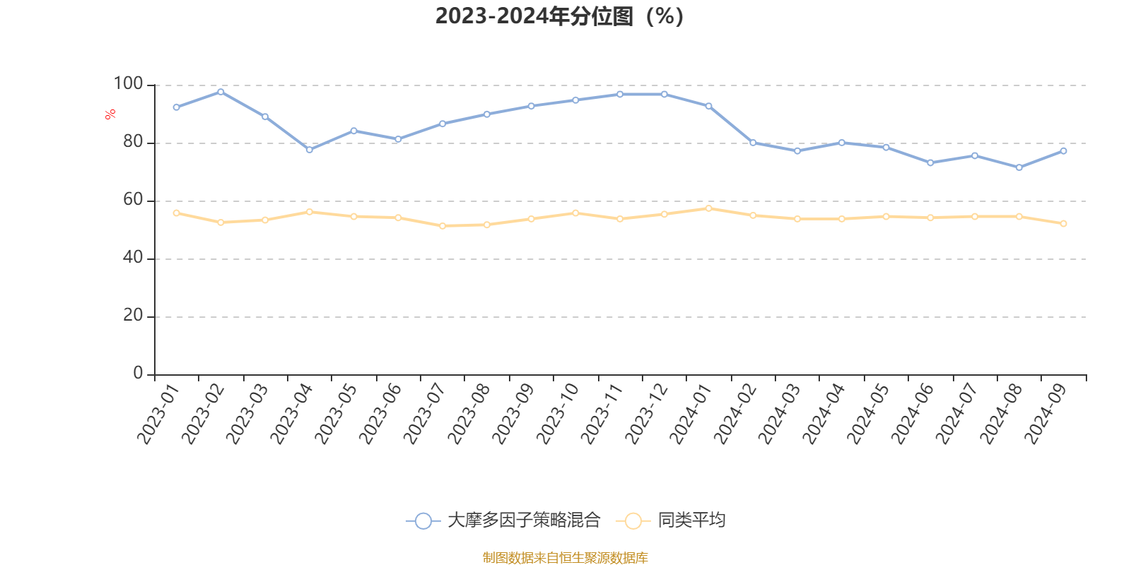 通过所选区间该基金净值增长率分位图,可以观察该基金与同类基金业绩比较情况。图为坐标原点到区间内某时点的净值增长率在同类基金中的分位数。