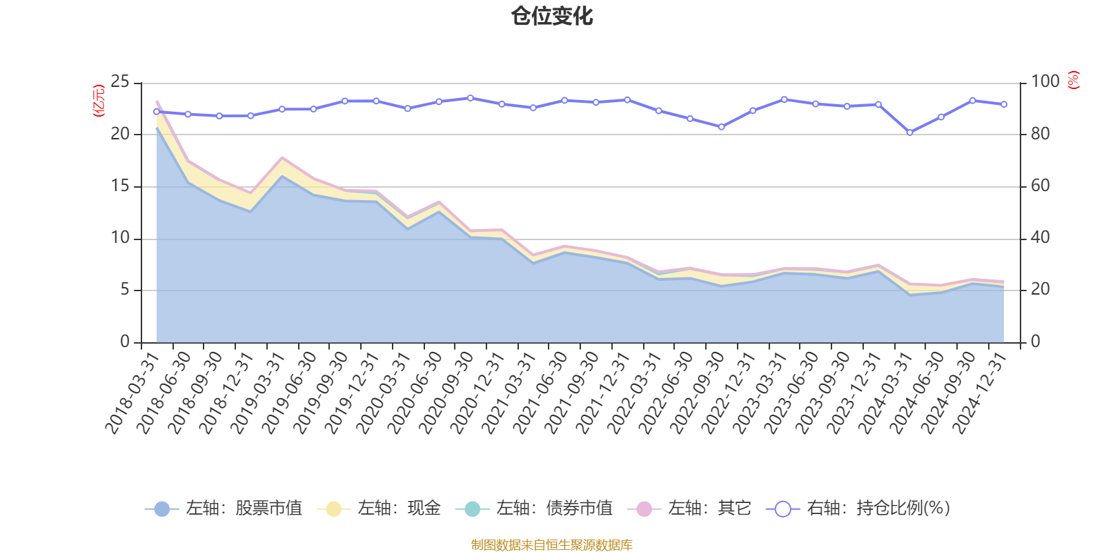 据定期报告数据统计,近三年平均股票仓位为89.04%,同类平均为85.73%。2020年三季度末基金达到94.15%的最高仓位,2024年一季度末最低,为80.9%。