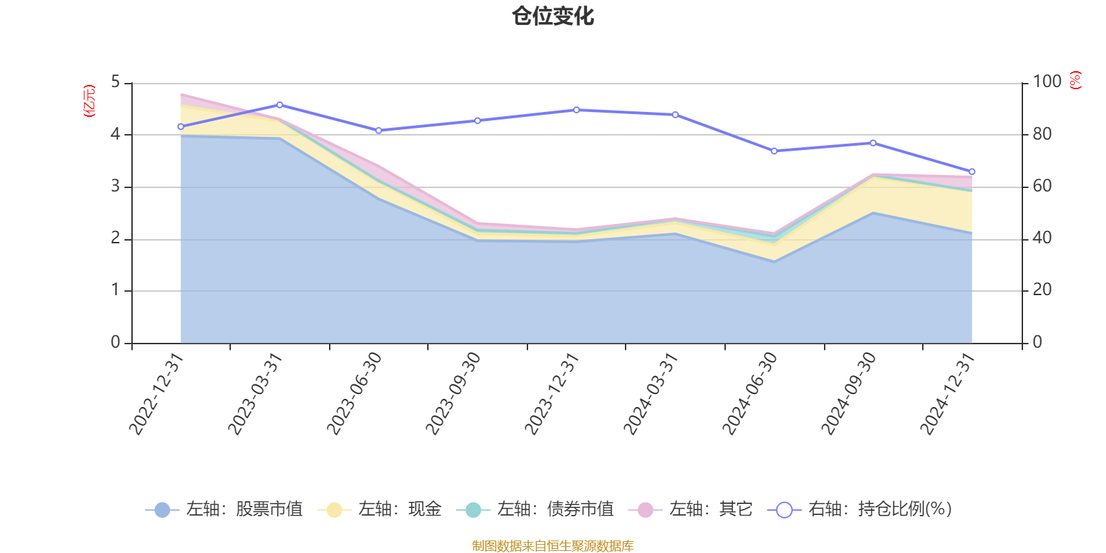 据定期报告数据统计,成立以来平均股票仓位为81.8%,同类平均为86.41%。2023年一季度末基金达到91.58%的最高仓位,2024年末最低,为65.91%。