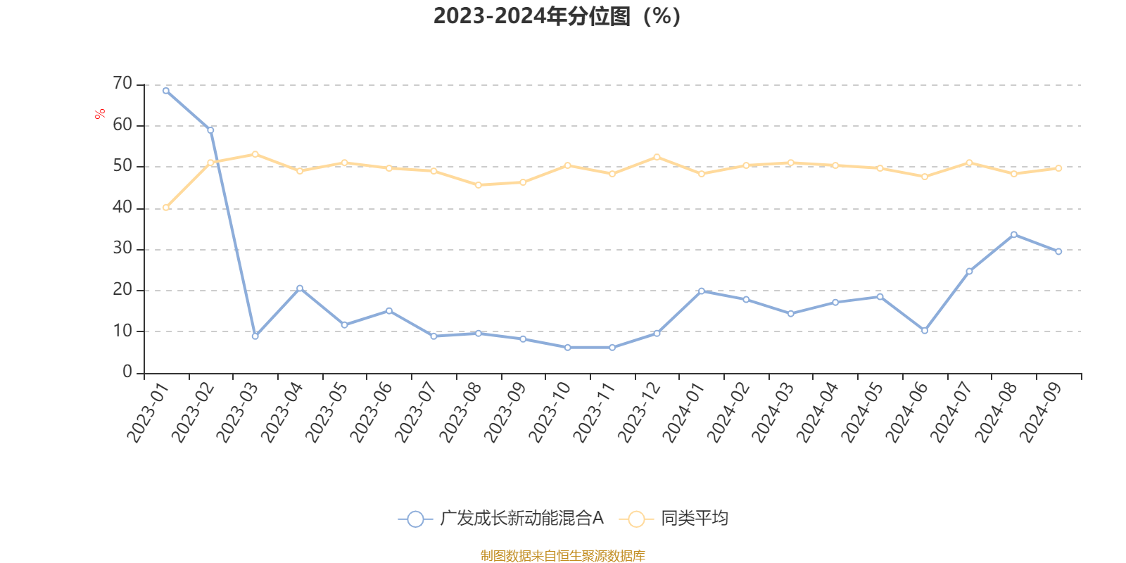 通过所选区间该基金净值增长率分位图,可以观察该基金与同类基金业绩比较情况。图为坐标原点到区间内某时点的净值增长率在同类基金中的分位数。