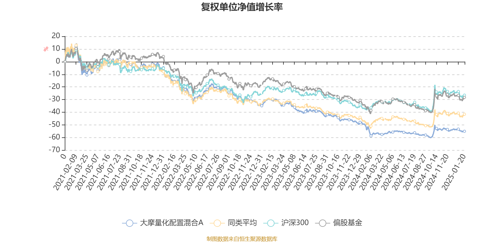 截至1月20日,大摩量化配置混合A近三个月复权单位净值增长率为-3.06%,位于同类可比基金373/536;近半年复权单位净值增长率为2.65%,位于同类可比基金409/536;近一年复权单位净值增长率为-7.44%,位于同类可比基金462/500;近三年复权单位净值增长率为-49.37%,位于同类可比基金251/265。