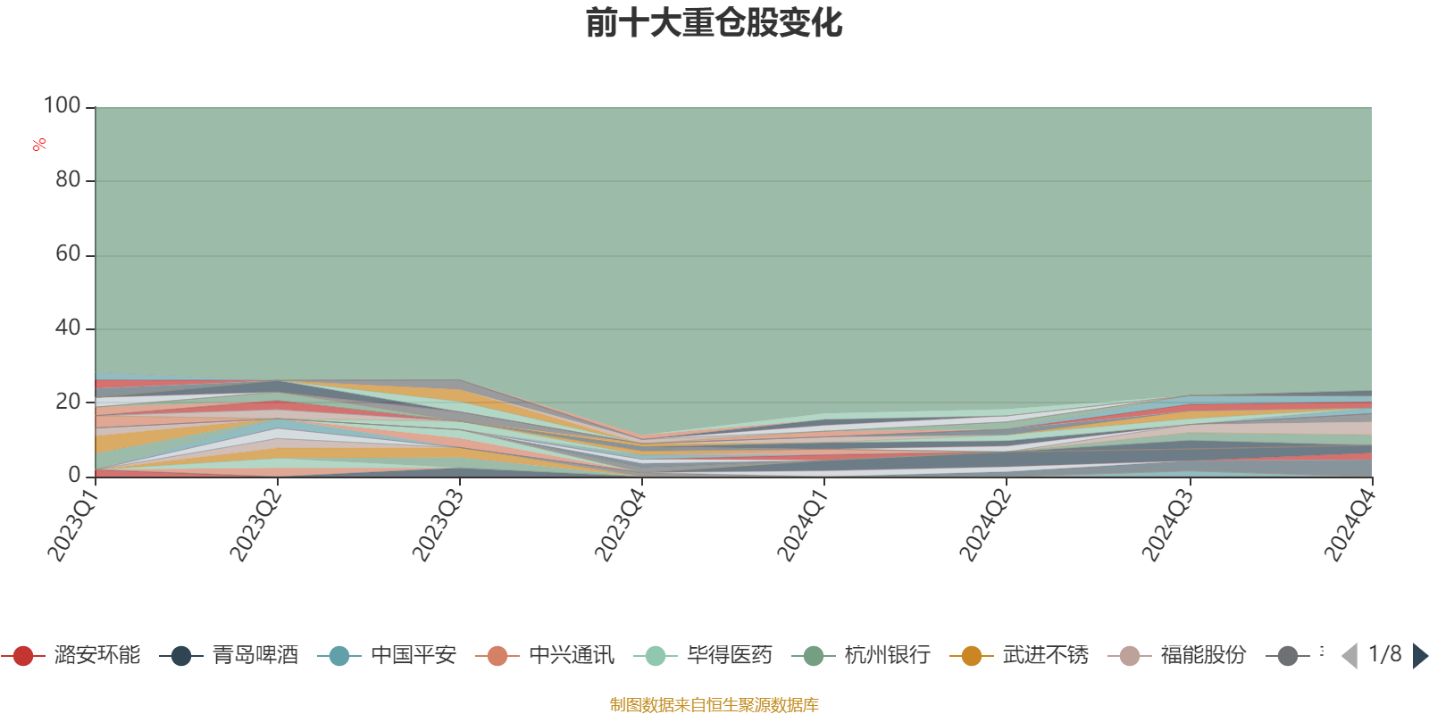 截至2024年四季度末,基金十大重仓股分别是贵州茅台、宁德时代、美的集团、长江电力、中远海控、大秦铁路、比亚迪、海尔智家、工商银行、江苏银行。