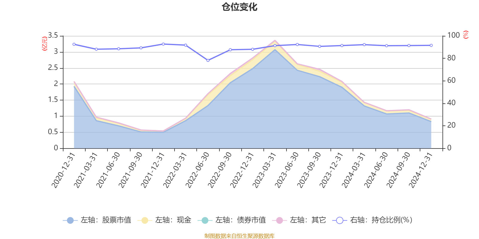 据定期报告数据统计,近三年平均股票仓位为89.81%,同类平均为86.5%。2021年末基金达到92.68%的最高仓位,2022年上半年末最低,为78.19%。