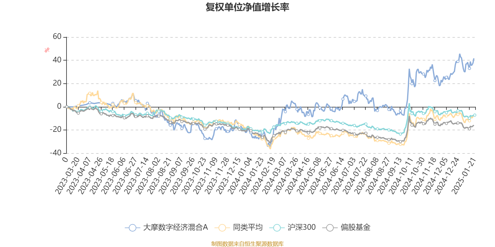截至1月20日,大摩数字经济混合A近三个月复权单位净值增长率为9.20%,位于同类可比基金24/202;近半年复权单位净值增长率为30.35%,位于同类可比基金34/202;近一年复权单位净值增长率为87.56%,位于同类可比基金1/191。