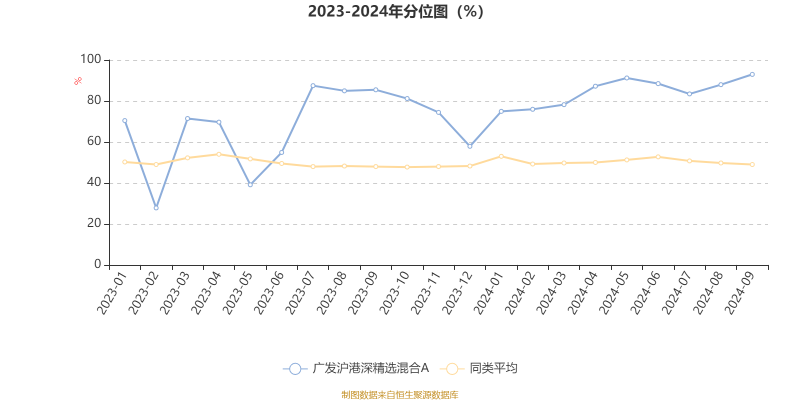 通过所选区间该基金净值增长率分位图,可以观察该基金与同类基金业绩比较情况。图为坐标原点到区间内某时点的净值增长率在同类基金中的分位数。