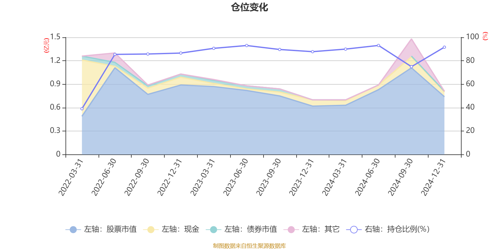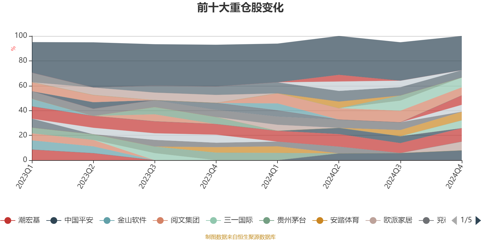 该基金持股集中度较高,近2年前十大重仓股集中度长期超过60%。截至2024年四季度末,基金十大重仓股分别是腾讯控股、东方财富、中国平安、阿里巴巴-W、欧派家居、三一重工、美团-W、中国太平、紫金矿业、法拉电子。