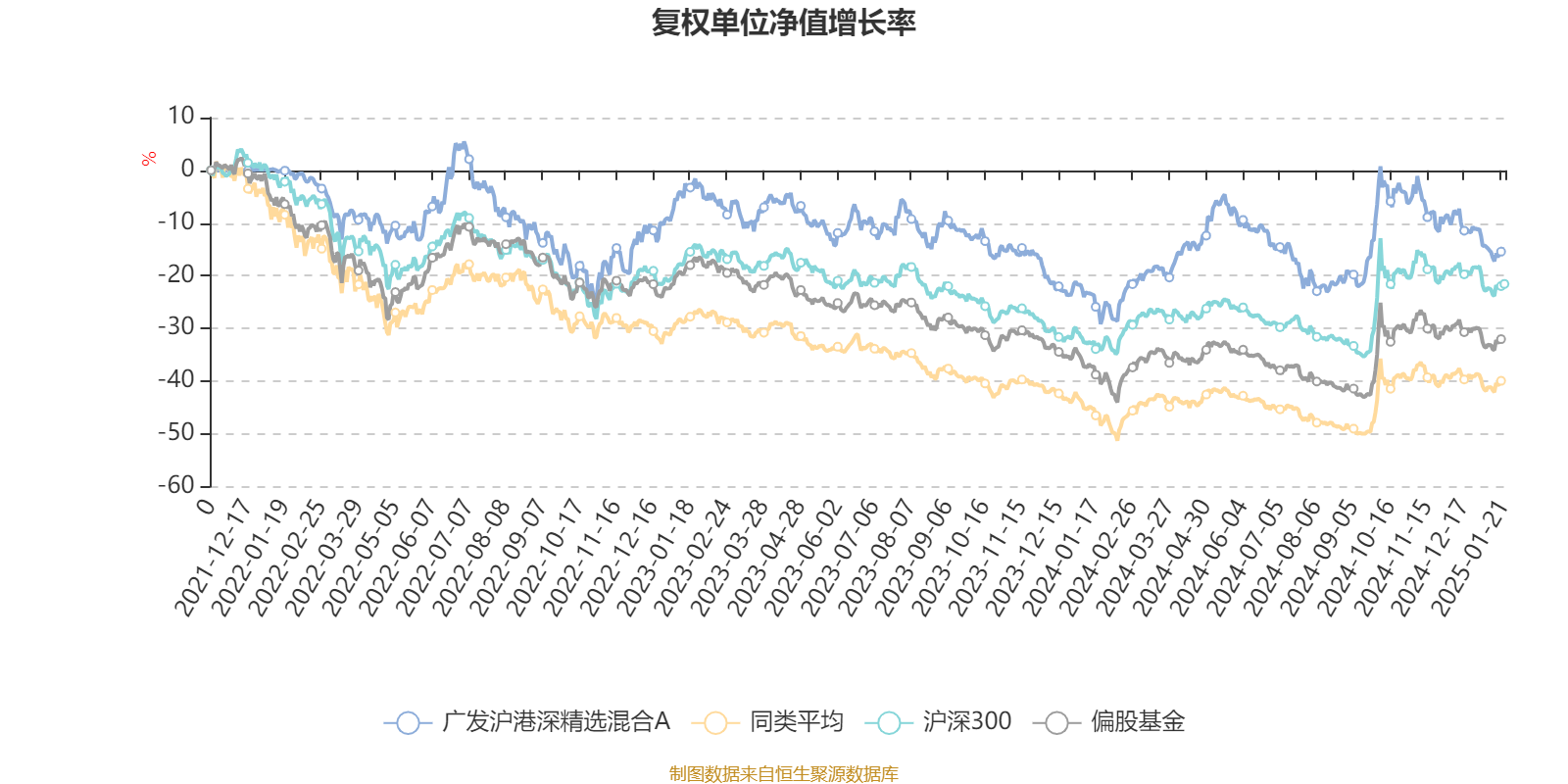 截至1月20日,广发沪港深精选混合A近三个月复权单位净值增长率为-11.54%,位于同类可比基金530/536;近半年复权单位净值增长率为3.90%,位于同类可比基金374/536;近一年复权单位净值增长率为16.58%,位于同类可比基金145/500;近三年复权单位净值增长率为-15.00%,位于同类可比基金53/265。