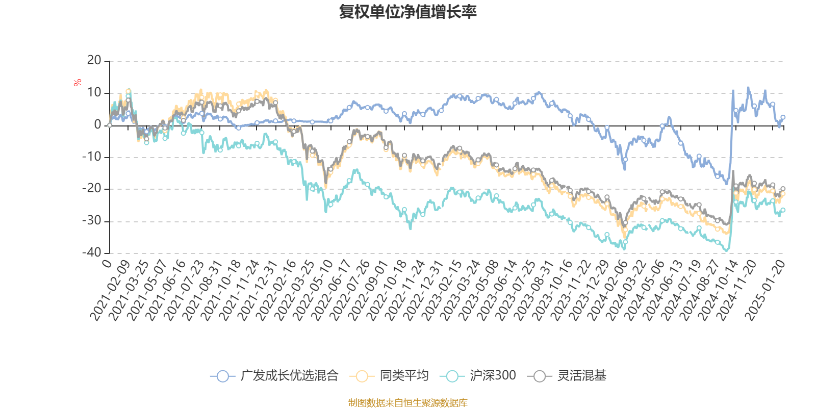 截至1月20日,广发成长优选混合近三个月复权单位净值增长率为-1.13%,位于同类可比基金481/920;近半年复权单位净值增长率为13.49%,位于同类可比基金230/920;近一年复权单位净值增长率为9.97%,位于同类可比基金476/920;近三年复权单位净值增长率为0.98%,位于同类可比基金68/898。