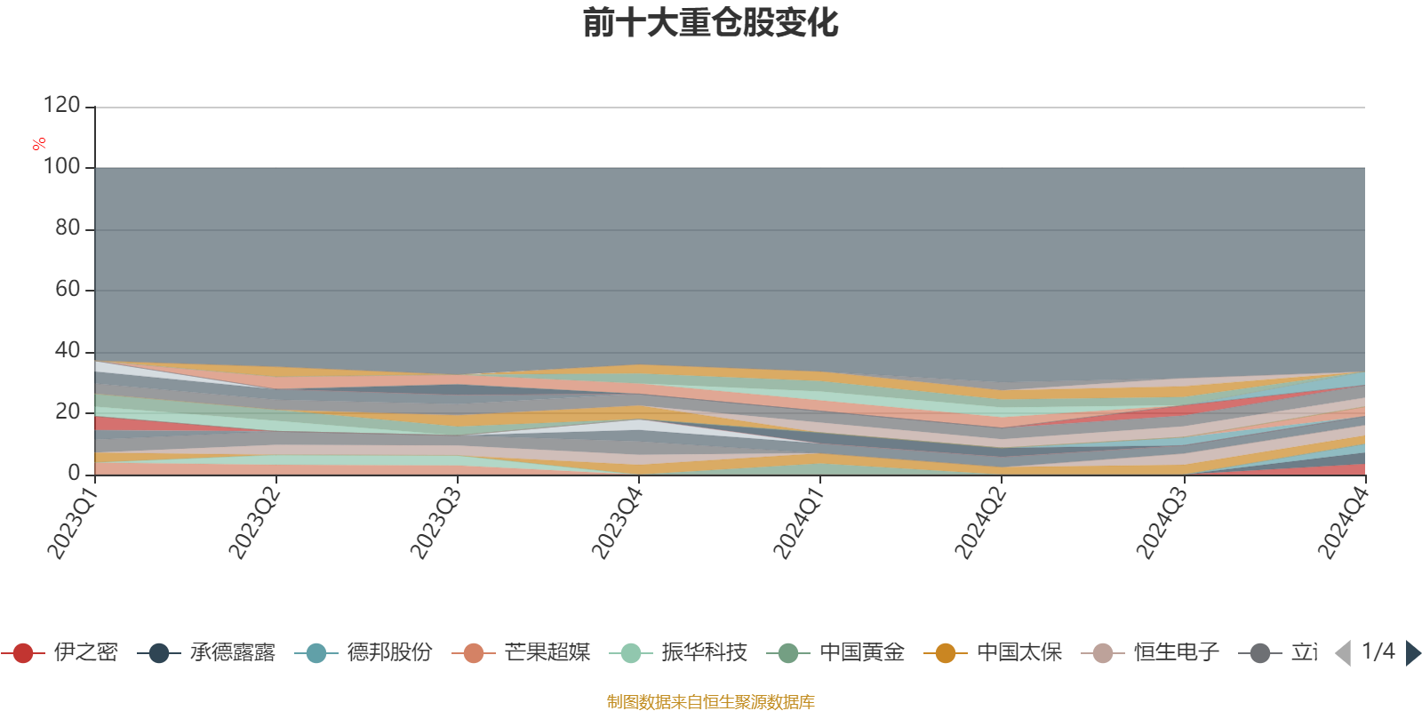 截至2024年四季度末,基金十大重仓股分别是比亚迪、伊利股份、承德露露、伊之密、恒生电子、宁德时代、锦江酒店、海康威视、德邦股份、中国太保。