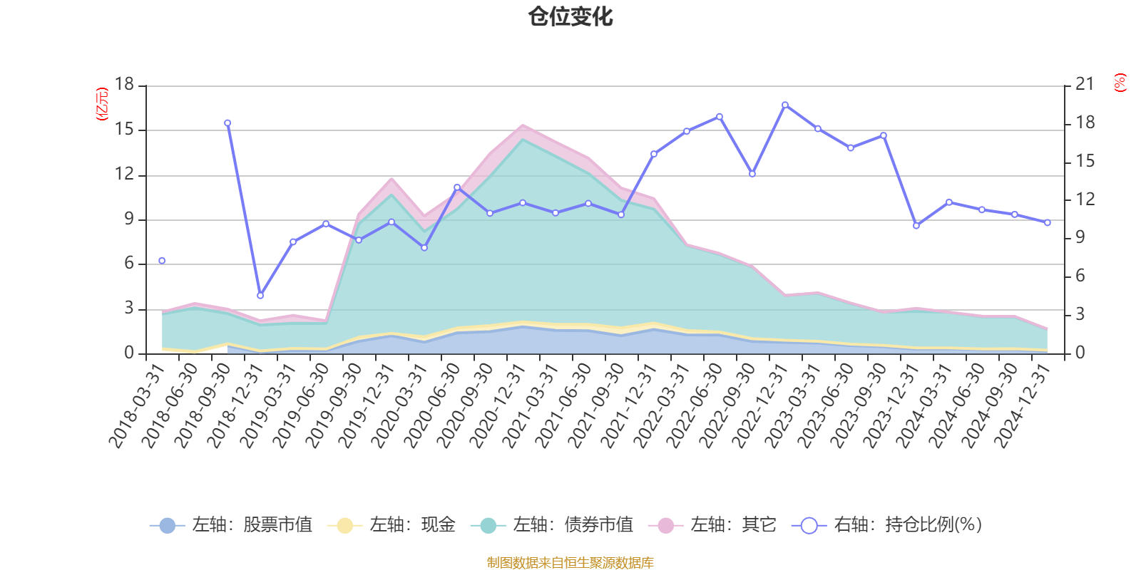 据定期报告数据统计,近三年平均股票仓位为14.56%,同类平均为18.5%。2022年末基金达到19.48%的最高仓位,2018年末最低,为4.56%。