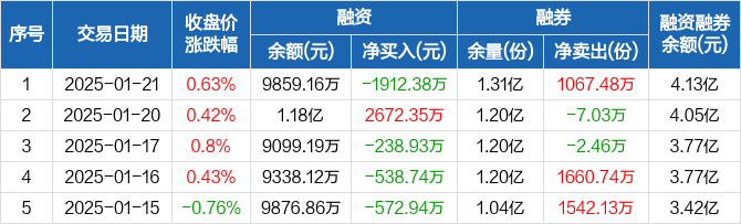 中证1000ETF:融资净偿还1912.38万元,融资余额9859.16万元(01-21)