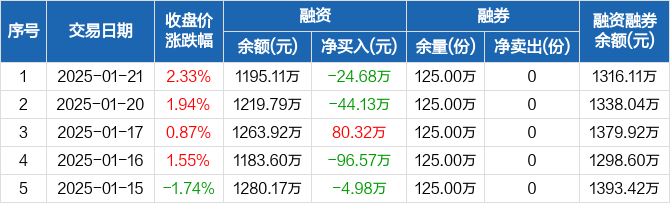 5GETF:融资净偿还24.68万元,融资余额1195.11万元(01-21)