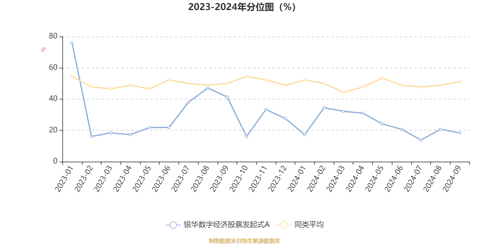 通过所选区间该基金净值增长率分位图,可以观察该基金与同类基金业绩比较情况。图为坐标原点到区间内某时点的净值增长率在同类基金中的分位数。