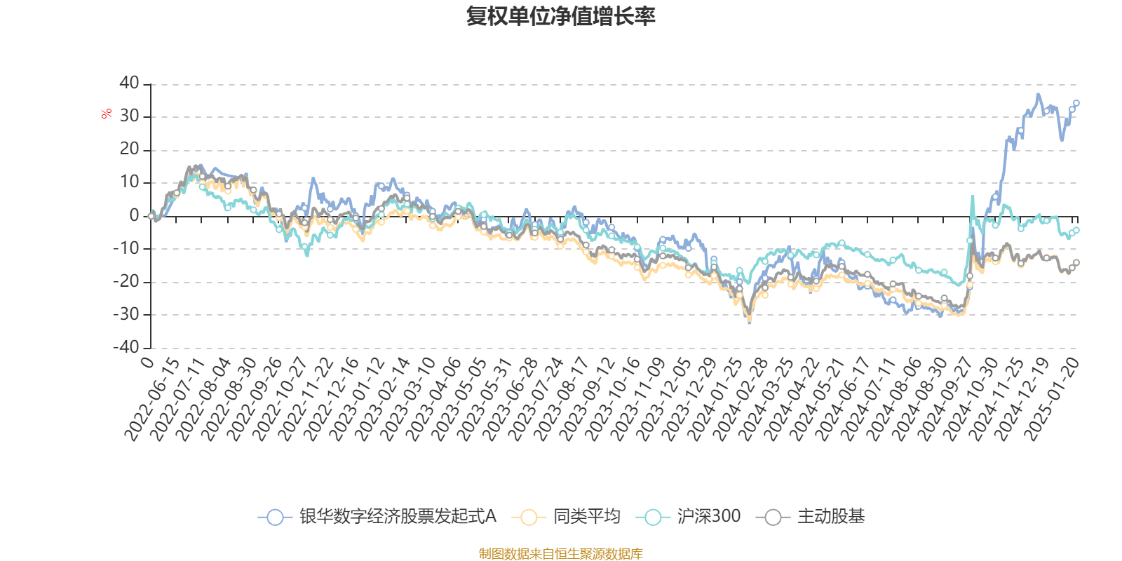 截至1月20日,银华数字经济股票发起式A近三个月复权单位净值增长率为38.06%,位于同类可比基金1/100;近半年复权单位净值增长率为84.35%,位于同类可比基金1/100;近一年复权单位净值增长率为73.44%,位于同类可比基金1/97。