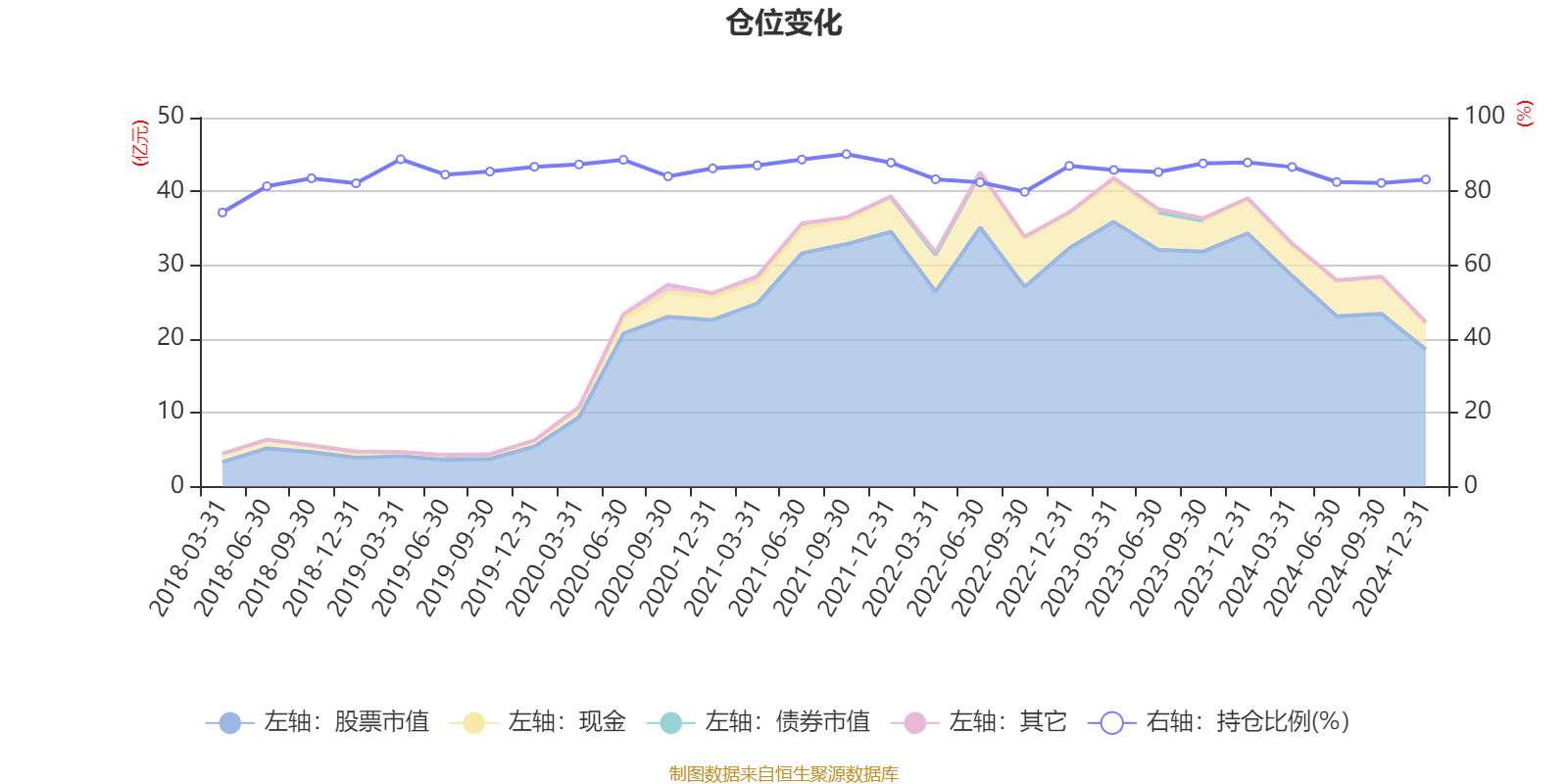 据定期报告数据统计,近三年平均股票仓位为84.47%,同类平均为87.94%。2021年三季度末基金达到90.1%的最高仓位,2018年一季度末最低,为74.28%。