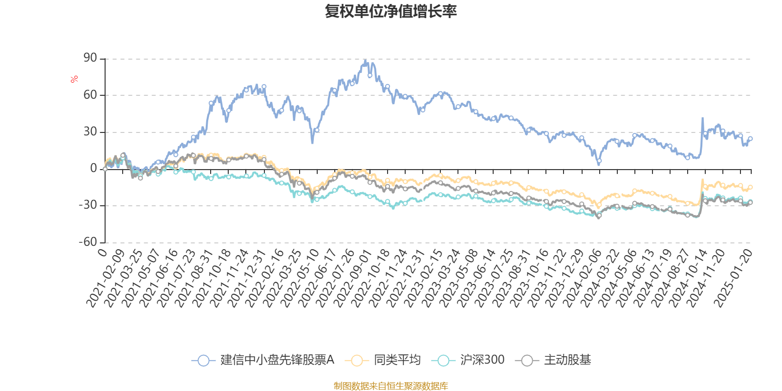截至1月20日,建信中小盘先锋股票A近三个月复权单位净值增长率为-4.31%,位于同类可比基金59/74;近半年复权单位净值增长率为5.07%,位于同类可比基金52/74;近一年复权单位净值增长率为8.31%,位于同类可比基金54/74;近三年复权单位净值增长率为-16.25%,位于同类可比基金35/73。